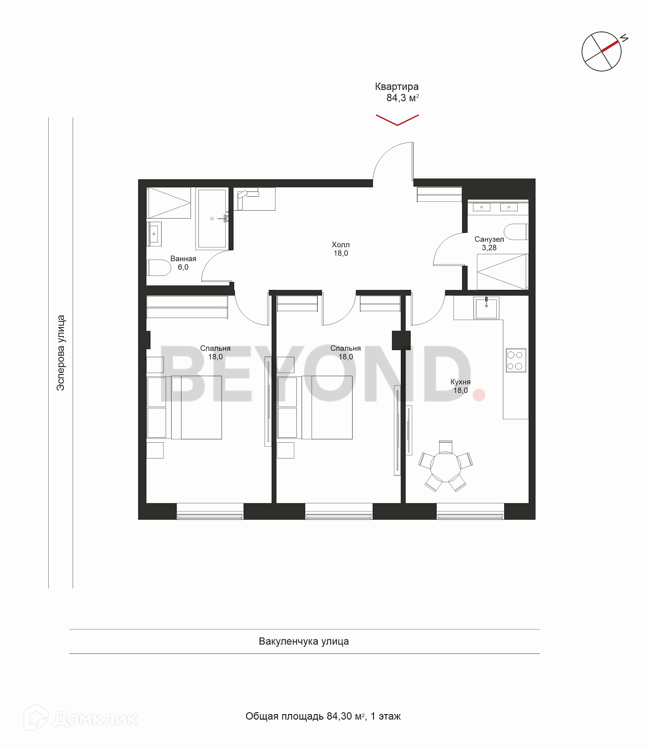 Общая площадь 84.3 м2