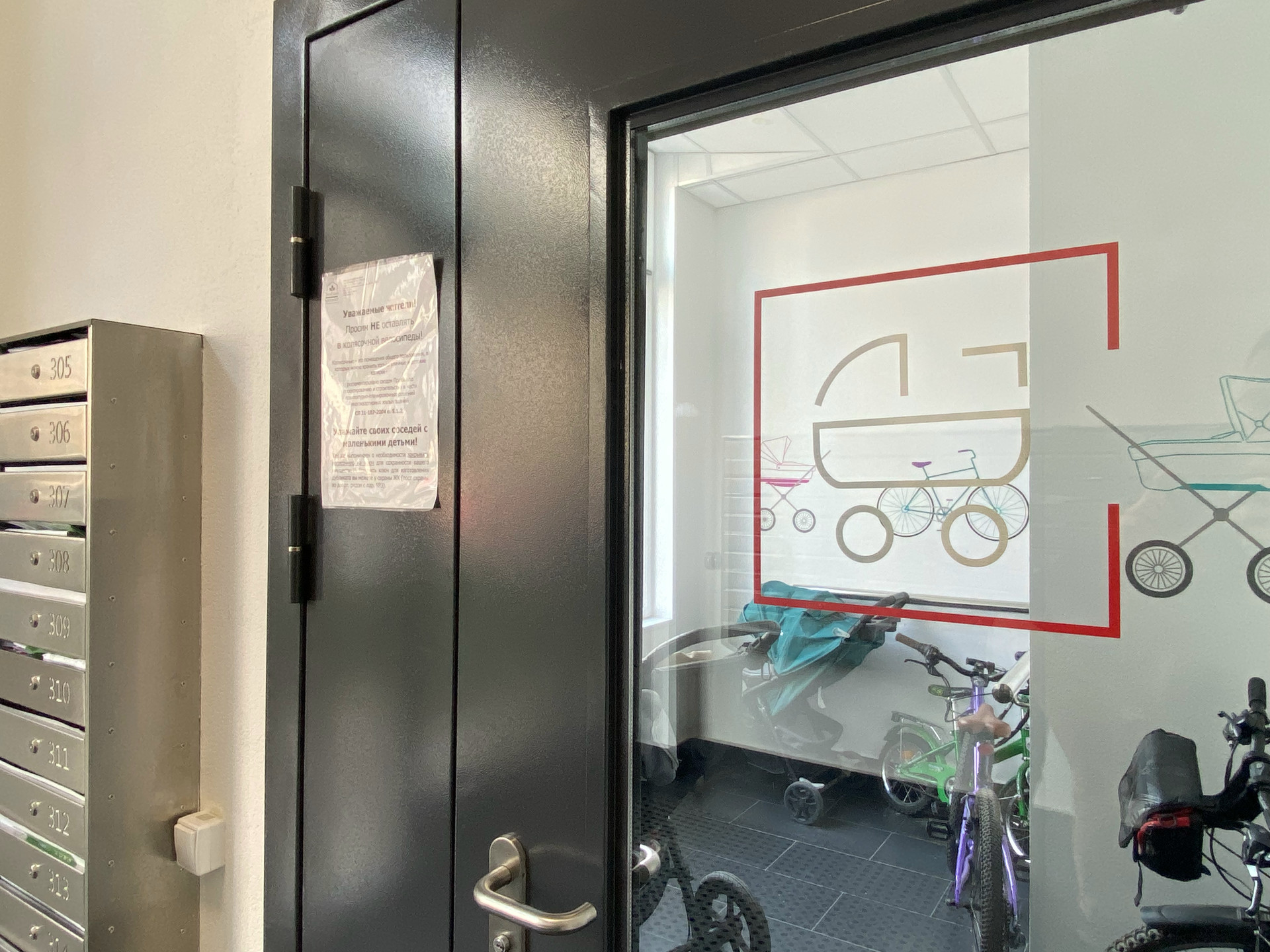4 этаж из 12. Удачное расположение на этаже, перед входной дверью есть отдельный отсек на две квартиры, где можно оставлять самокаты и т.п.
