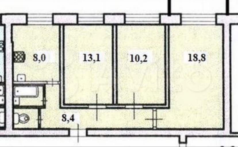 Жилая площадь 42.1 м2