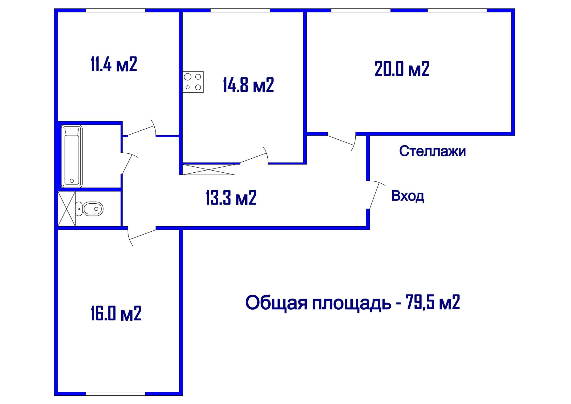 Продаю просторную, светлую 3 комнатную квартиру в 12 этажном доме. Дом 1986 года постройки, серия 137. Общая площадь 79.5 м2. Кухня 14.8 м2, комнаты 20м2, 16 м2 и 11.4м2. Высота потолков 2.65м. Ванная (1,8м х 1.5м) и туалет (1м х 1м) раздельные. Выполнен косметический ремонт. Окна заменены все на пластиковые (выбирал специальные шумоизоляционные - толщина стёкол, расстояния м/у ними и т.п.). По всей площади пола комнат, кухни и коридора уложена паркетная доска (не ламинат), плитка кафельная на пятачке у входа. Входная дверь заменена на новую с зеркалом и 3х контурным уплотнением. Дом в тёплое время года утопает в зелени.