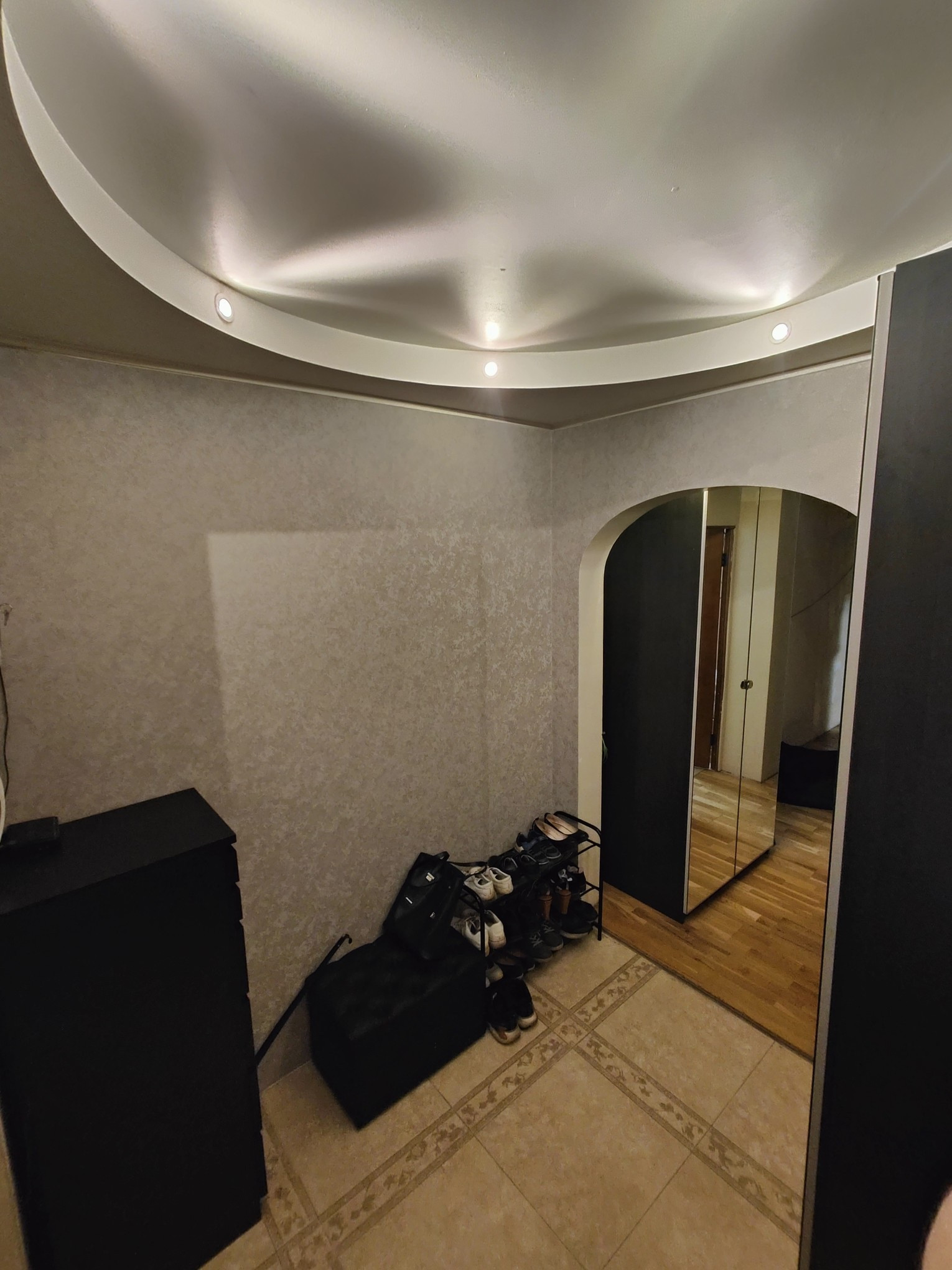 Квартира расположена на 2ом этаже, имеется 2 лифта (в т.ч. грузовой). Выходы из дома на обе стороны - по 1 во двор с лифта и с лестницы и 1 на проезжую часть ул. Латышских Стрелков. Общий коридор отделён от лифтового холла железной дверью с замком, вдоль него можно ставить велосипеды, коляски и т.п. Также в общем коридоре имеется свой шкаф (шириной 1,5м, глубиной 0,6м и высотой 2,65м) для хранения. Полки регулируемые по высоте. Можно размещать колеса автомобиля и всю мелочевку. По квитанциям ЖКХ в целом выходит где-то 10~13 т.р. ТСЖ, все вопросы решаются по телефону с председателем.