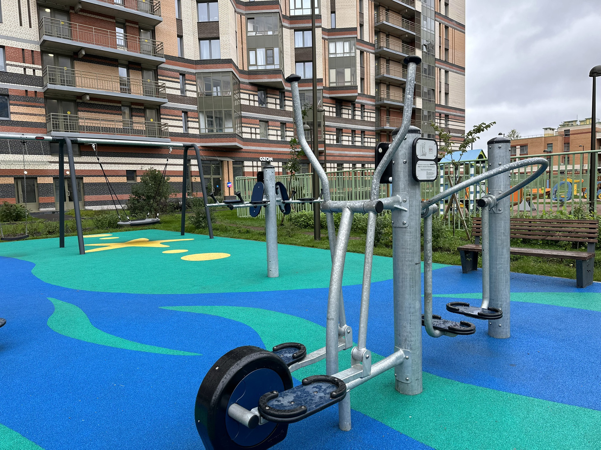 Современные площадки для детей разного возраста, спортивные снаряды для подростков и взрослых, беседки для спокойного отдыха.