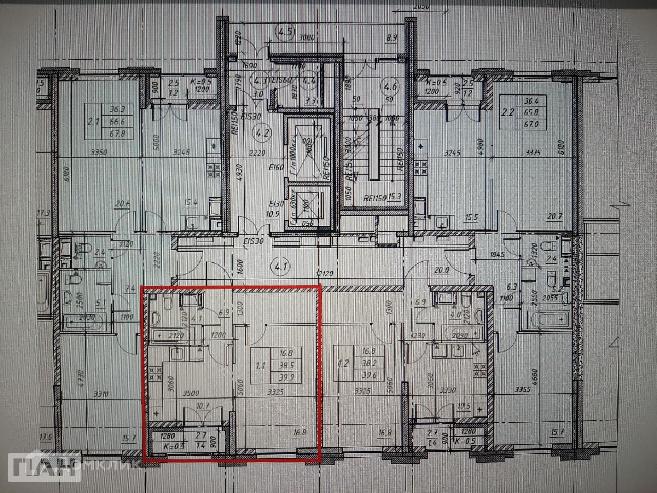 Общая площадь 38.5 м2