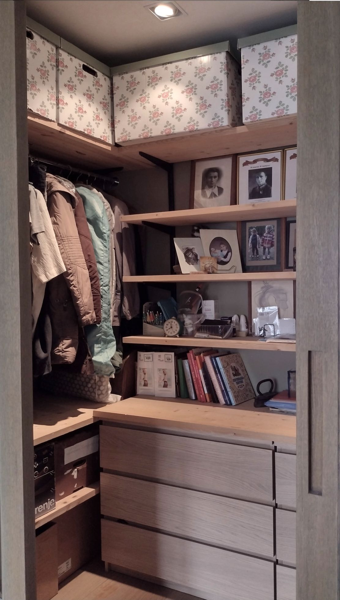 Встроенная кухня.Техника: холодильник Liebherr, посудомоеч. машина Bosch, варочная поверхность, дух. шкаф и стир. машина Electrolux.Места хранения: встроенный шкаф в прихожей,гардеробная.