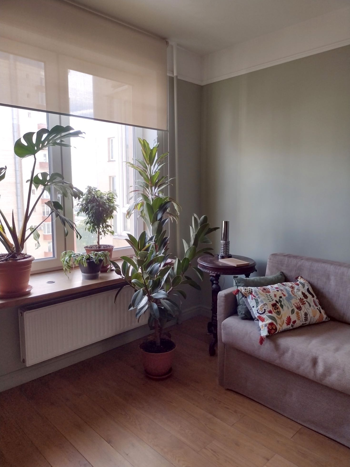 Застекленный балкон,тепл пол. Полы во всей квартире-массив дуба.