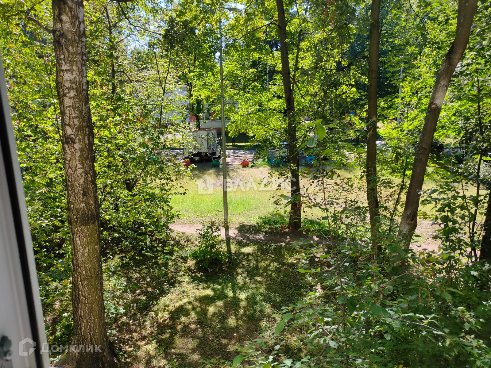 Балкон застеклен. Тихий, зелёный двор.