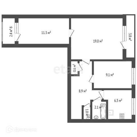 Жилая площадь 39.4 м2