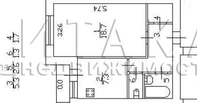 Жилая площадь 18.7 м2