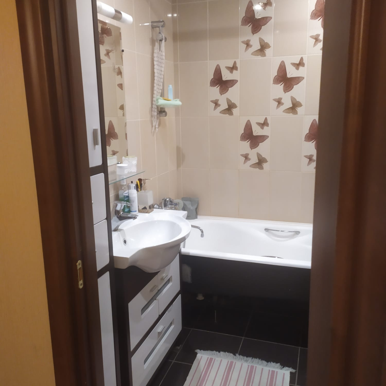 Продается 2х-комнатная квартира в отличном состоянии. Есть гардеробная при входе. Балкон. Теплый пол в ванной и прихожей. Остается кухня с техникой, обстановка в ванной. В доме ведется видеонаблюдение.