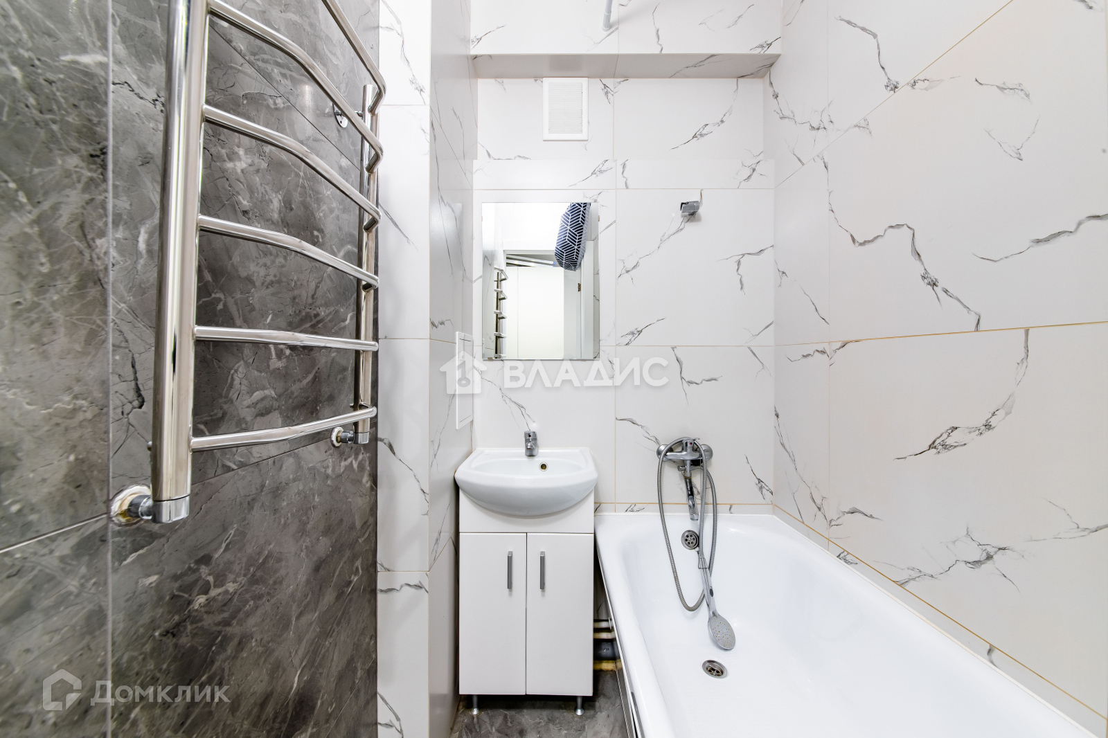 - В ванной комнате установлены современная сантехника и стильная плитка. Все работы проведены с использованием качественных материалов.