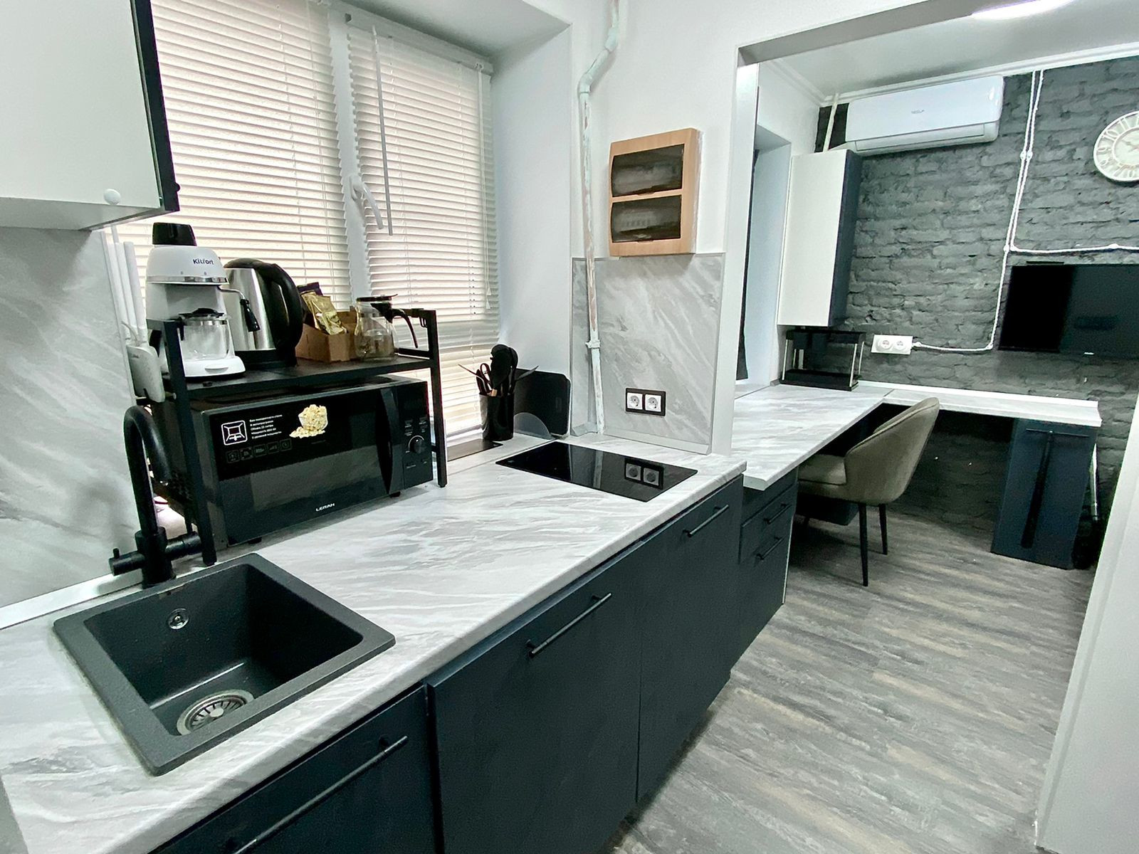 Помимо косметики была произведена полная меблировка и установлено бытовое оборудование: варочная поверхность, кондиционер, телевизор, микроволновка, холодильник, стиральная машина, все новое!