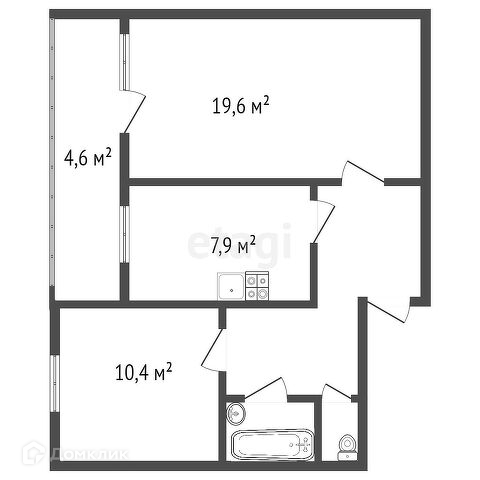Жилая площадь 30.9 м2