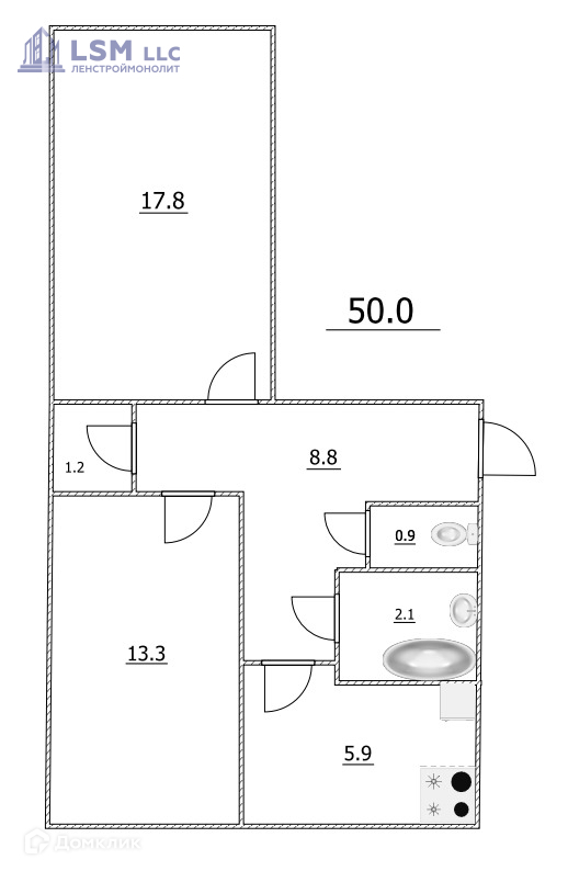 Общая площадь 50 м2