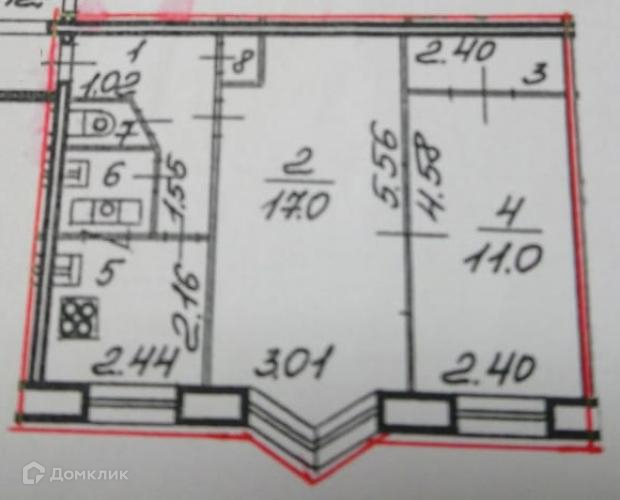 Общая площадь 43.3 м2