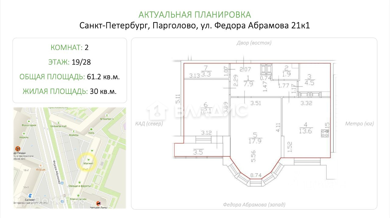Общая площадь 61.2 м2
