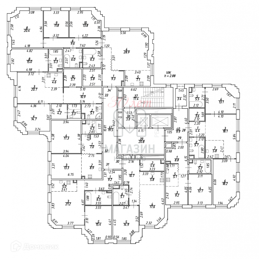 Высота потолков 2.9 м