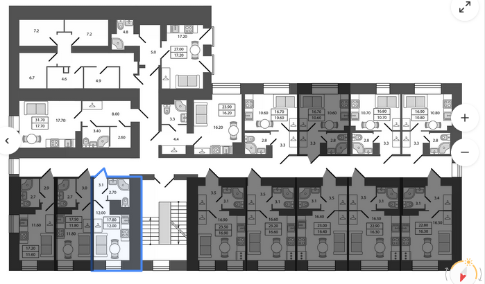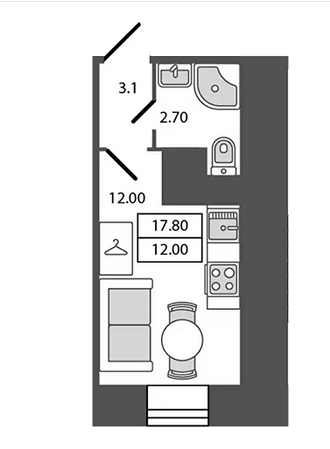 Общая площадь 17.8 м2