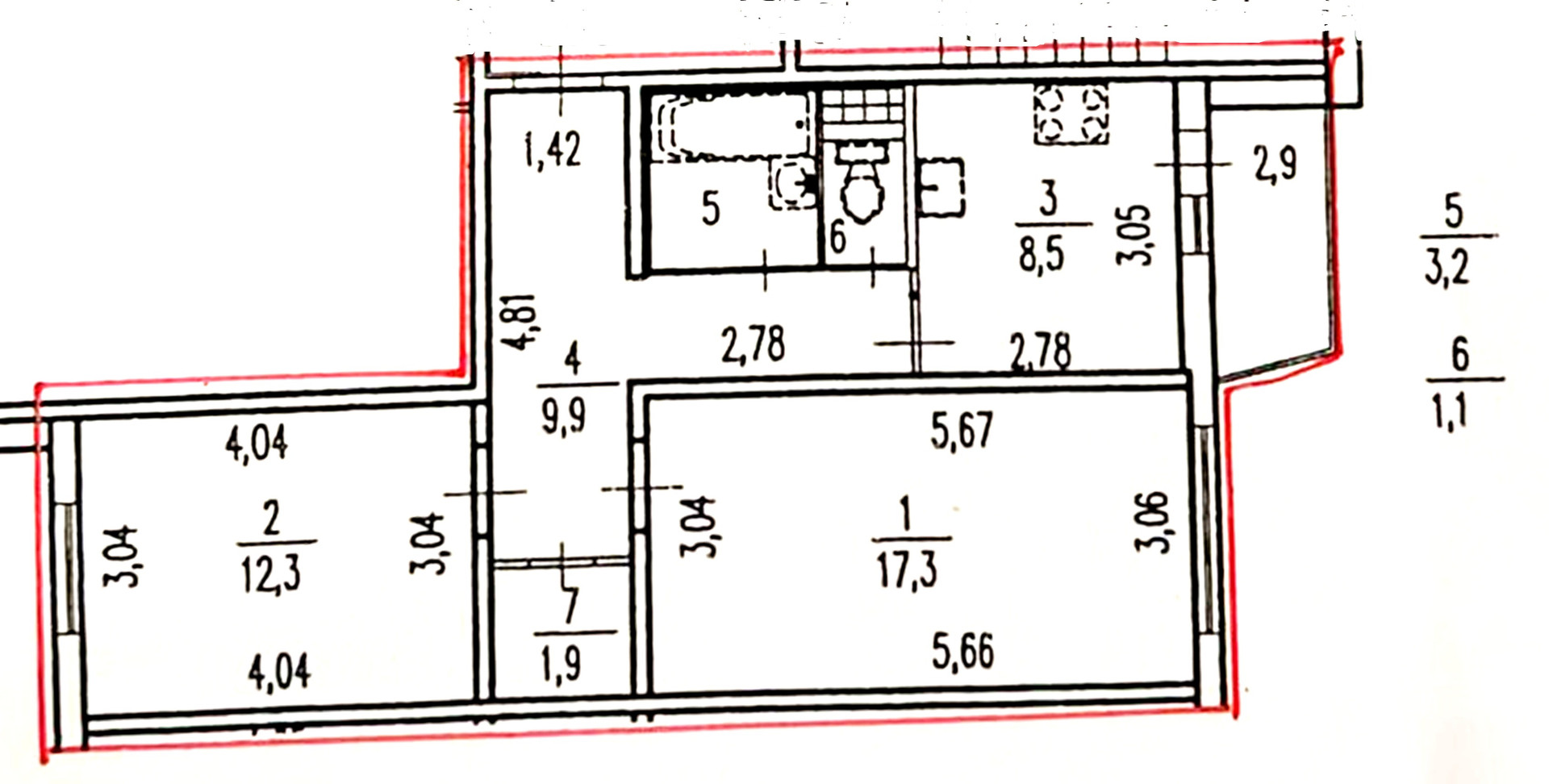 Высота потолков 2.8 м