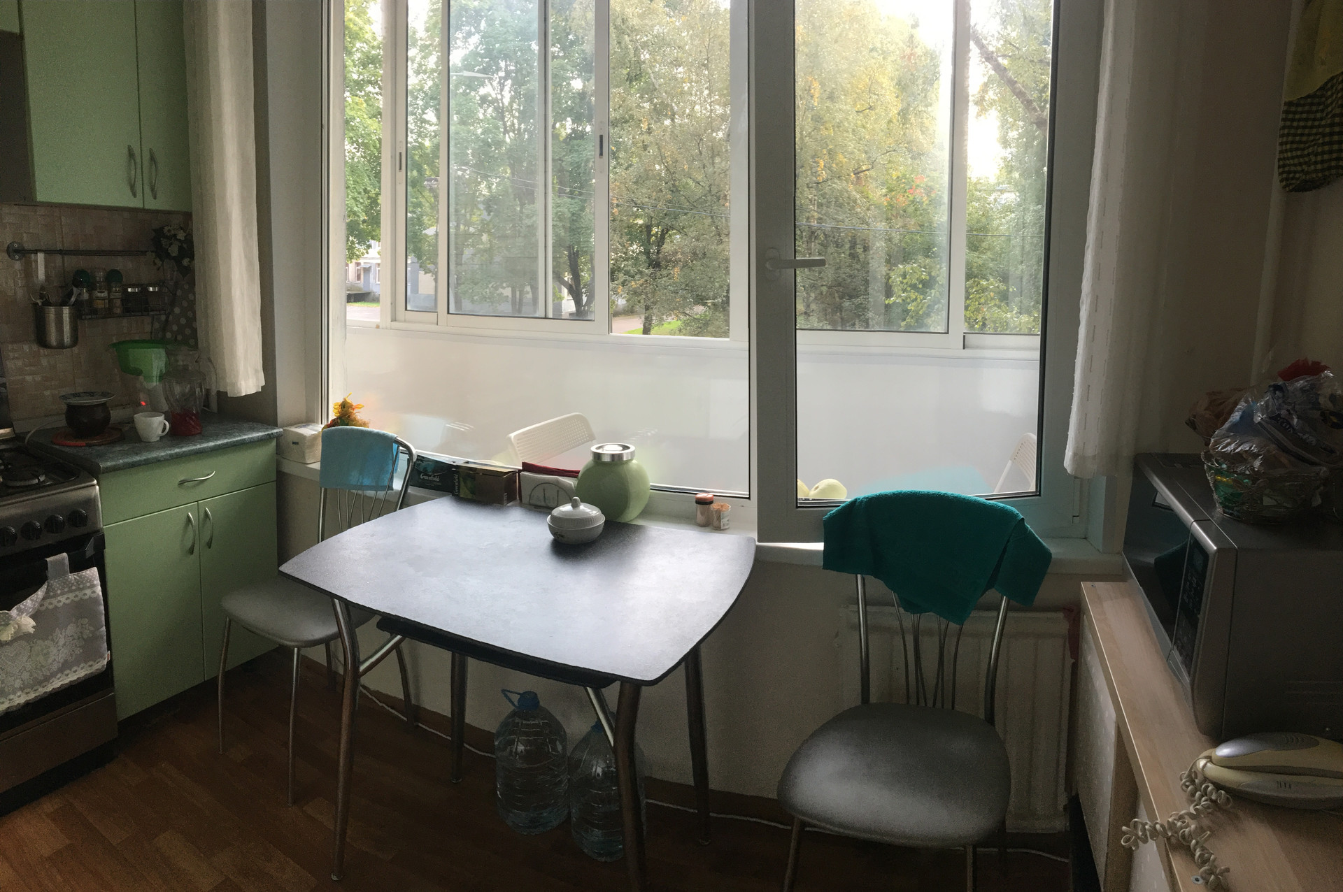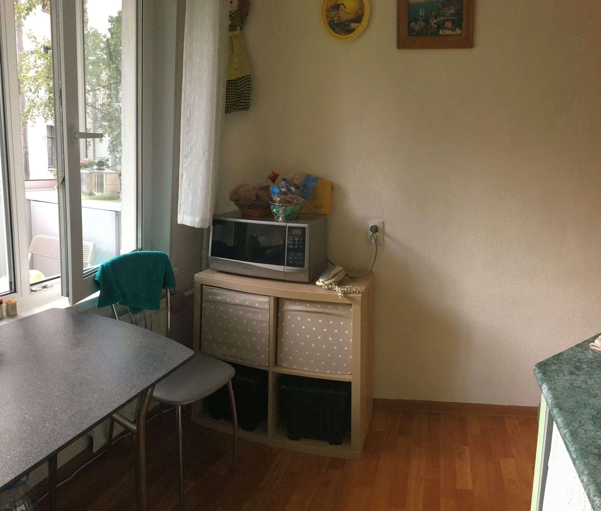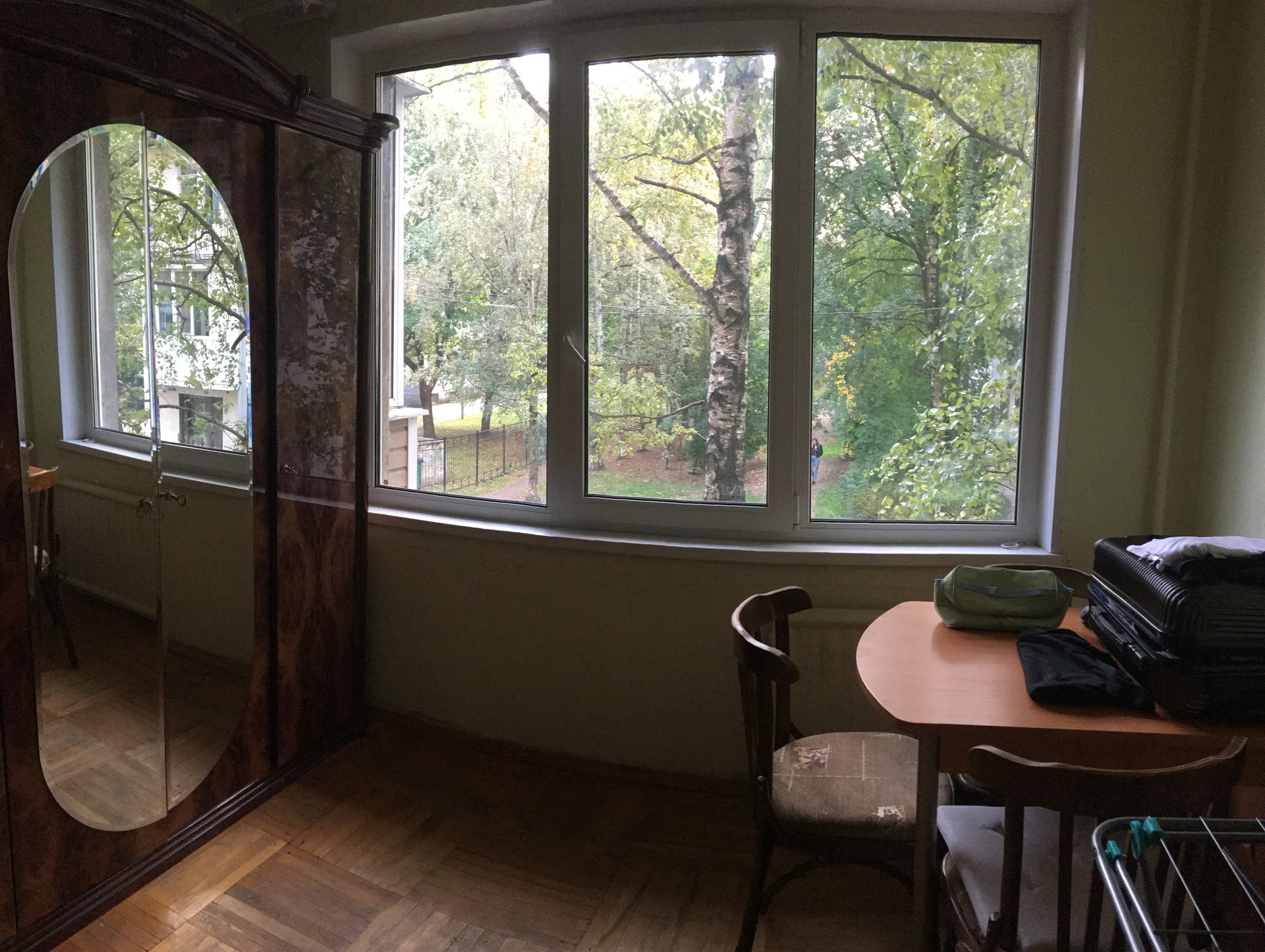 Окна квартиры выходят в зелёный двор, рядом с подъездом парковочных мест более чем достаточно.