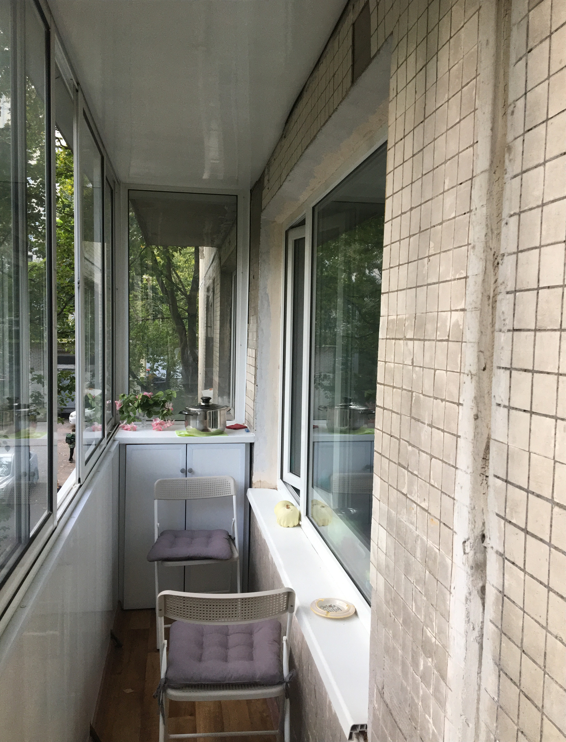 B квартире установлены стеклопакеты , балкон большой на кухню и комнату .