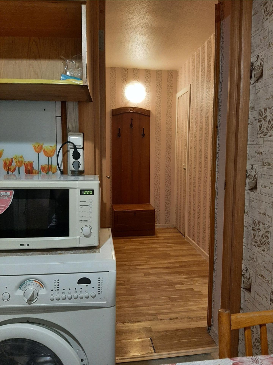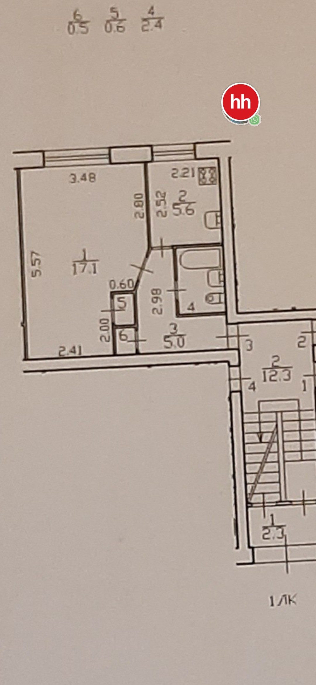 Общая площадь 32 кв.м площадь комнат 17,5 кв.м., кухня 5,7 м. Квартира расположена на 1 этаже 5-этажного тёплого кирпичного дома . Горячая вода из центрального водоснабжения,колонка не нужна.