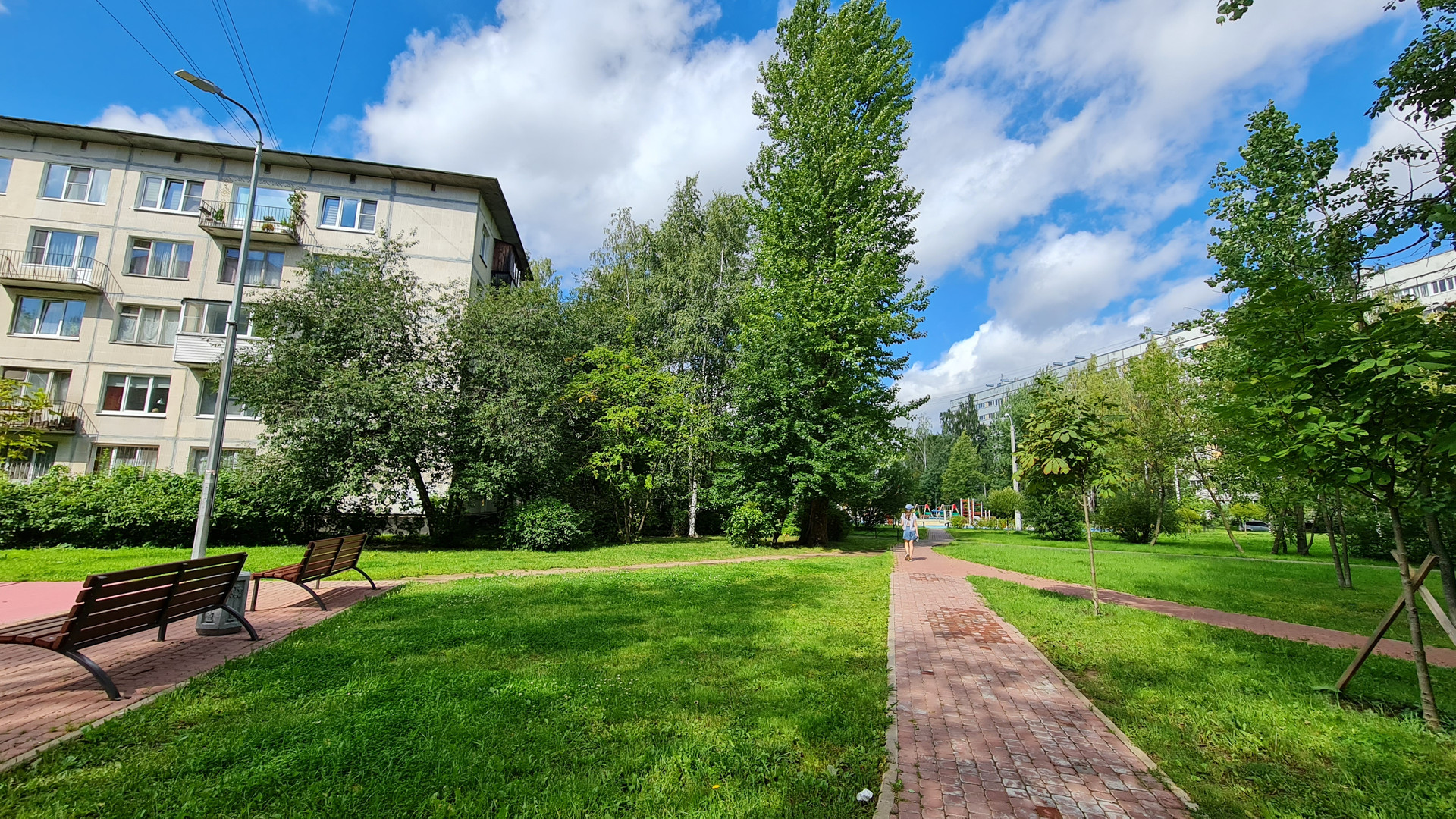 Во дворе школа 119, детский сад 95, магазины, детская и спортивная площадка.
