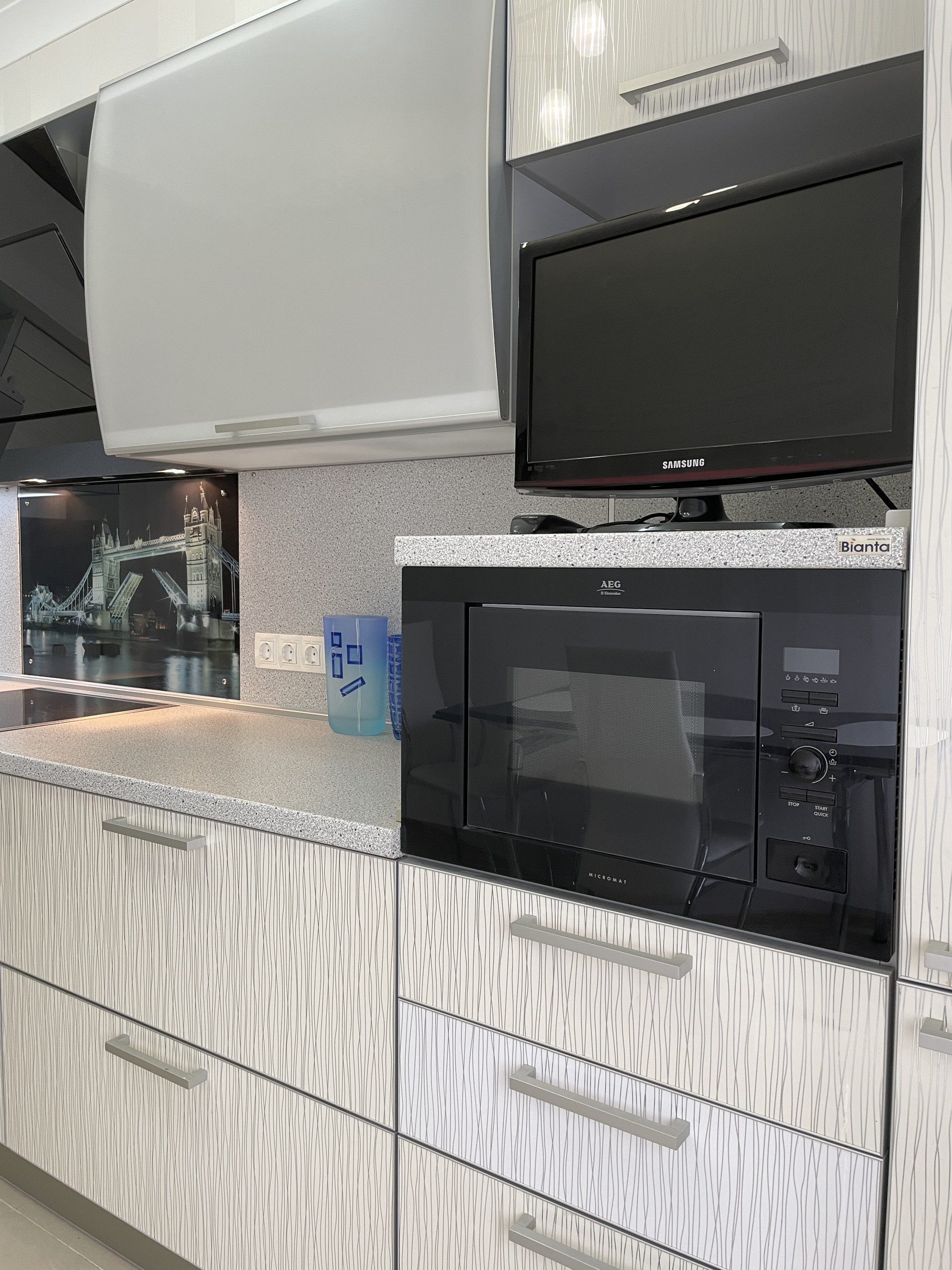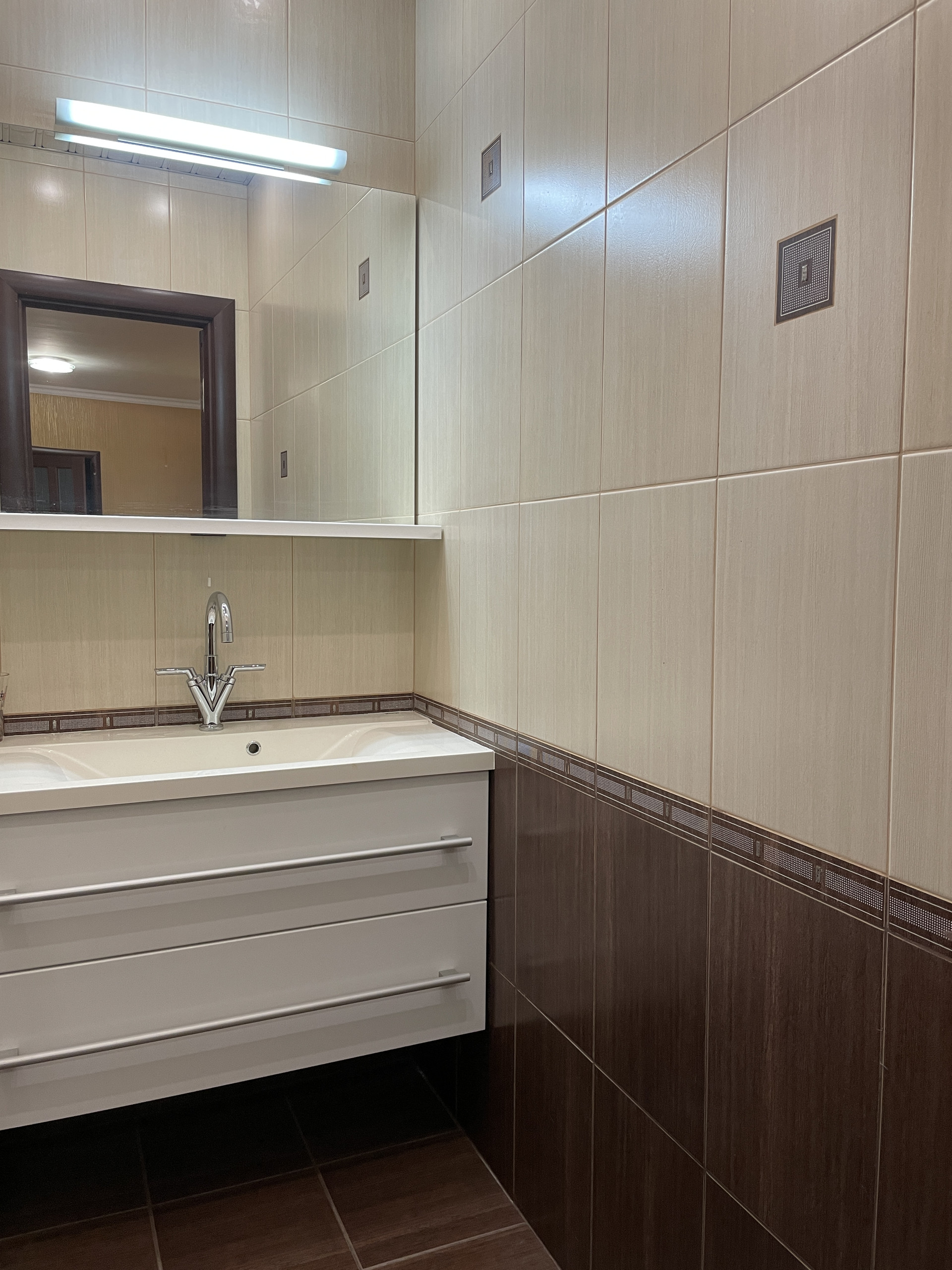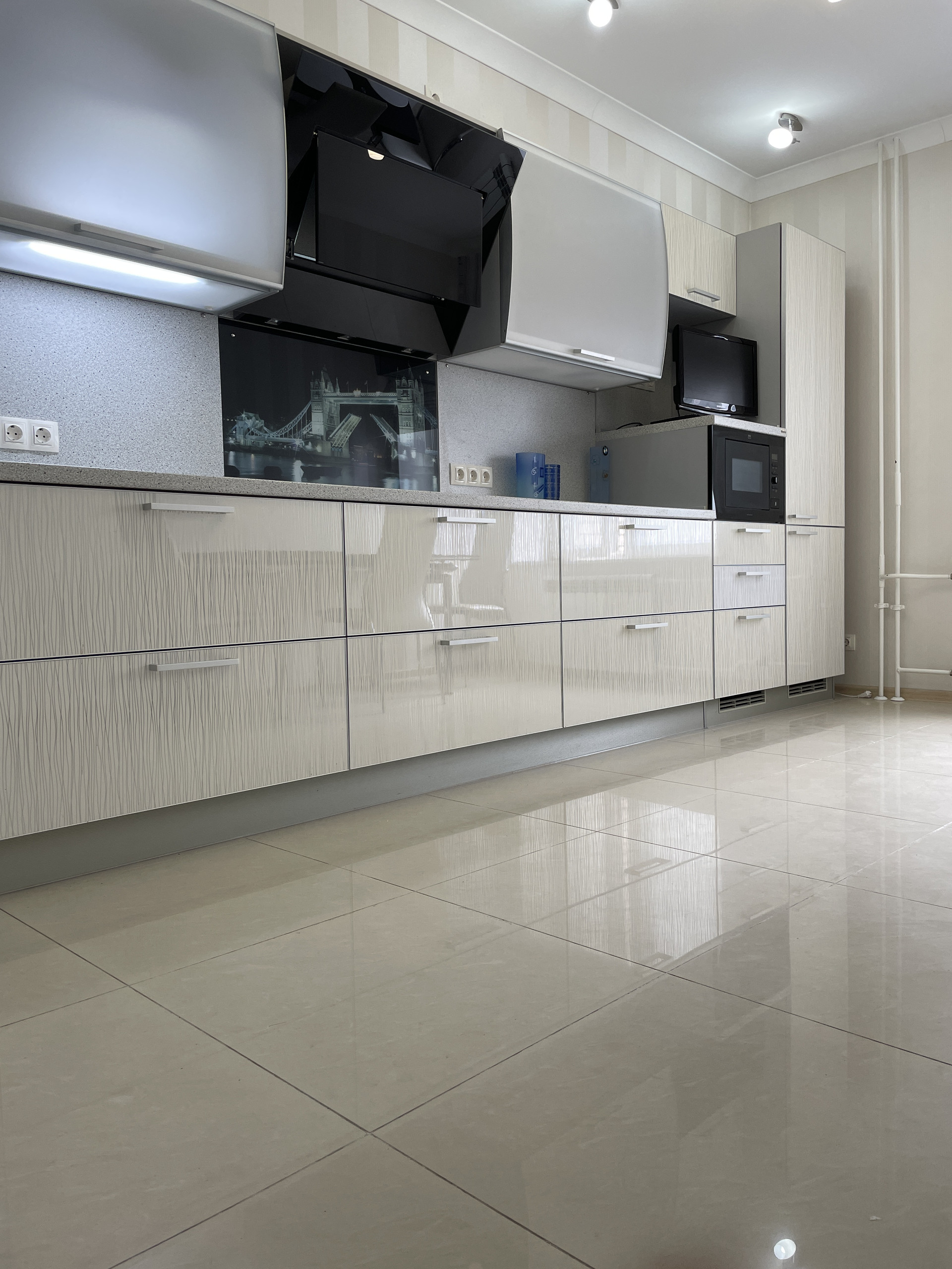 Отделка во всей квартире выполнена из качественных и дорогих материалов, бытовая техника и мебель также от высоклассных брендов.