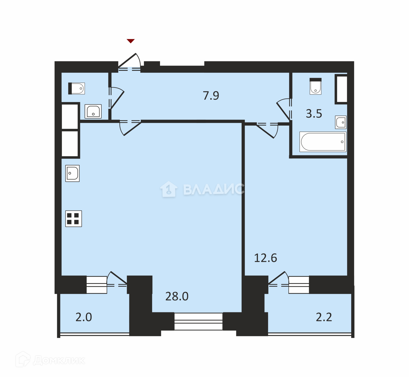 Общая площадь 53.7 м2