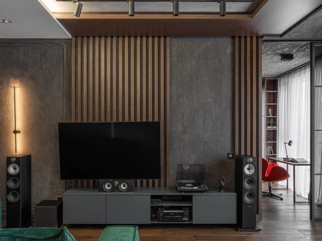 Управление мультимедиа: в квартире 3 канала звука, раздача с мобильного телефона или квартирного сервера. Акустика 5:1 Bower Wilkins
