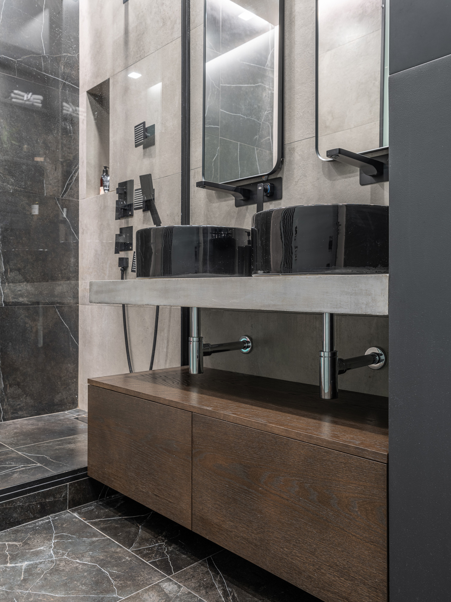 В квартире выполнен высококачественный ремонт по авторскому проекту с использованием натуральных материалов и современных технических решений: дополнительная звукоизоляция во всех помещениях, фильтры на воду, Умный дом Larnitech KNX, акустики класса High End, система против протечек в квартире, система кондиционирования и принудительной вентиляции с фильтрацией воздуха, в отделке использован натуральный шпон американский орех и мрамор в зоне кухни. Вся встроенная мебель изготовлена на заказ, поэтому предусмотрено много дополнительных мест хранения.