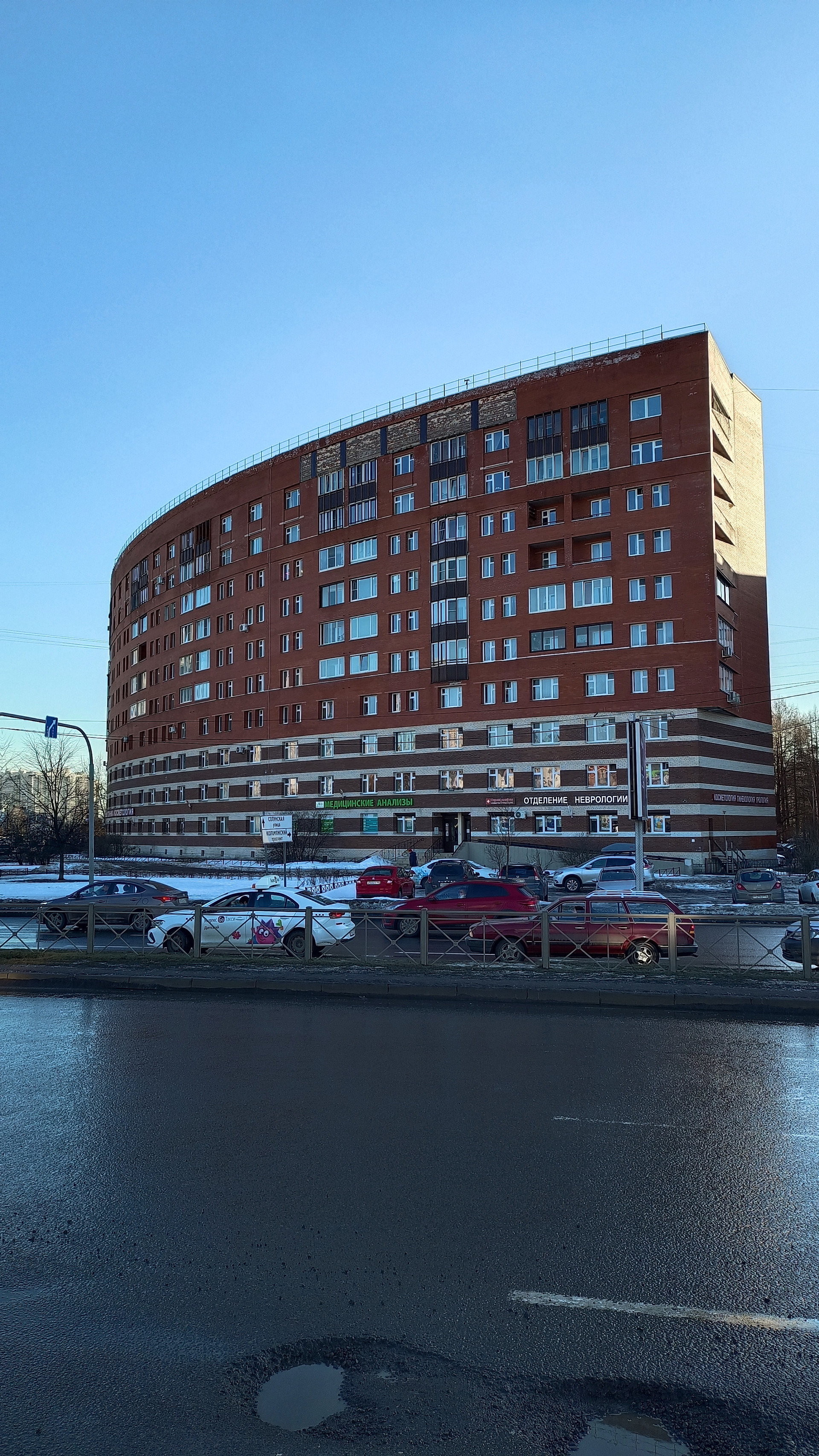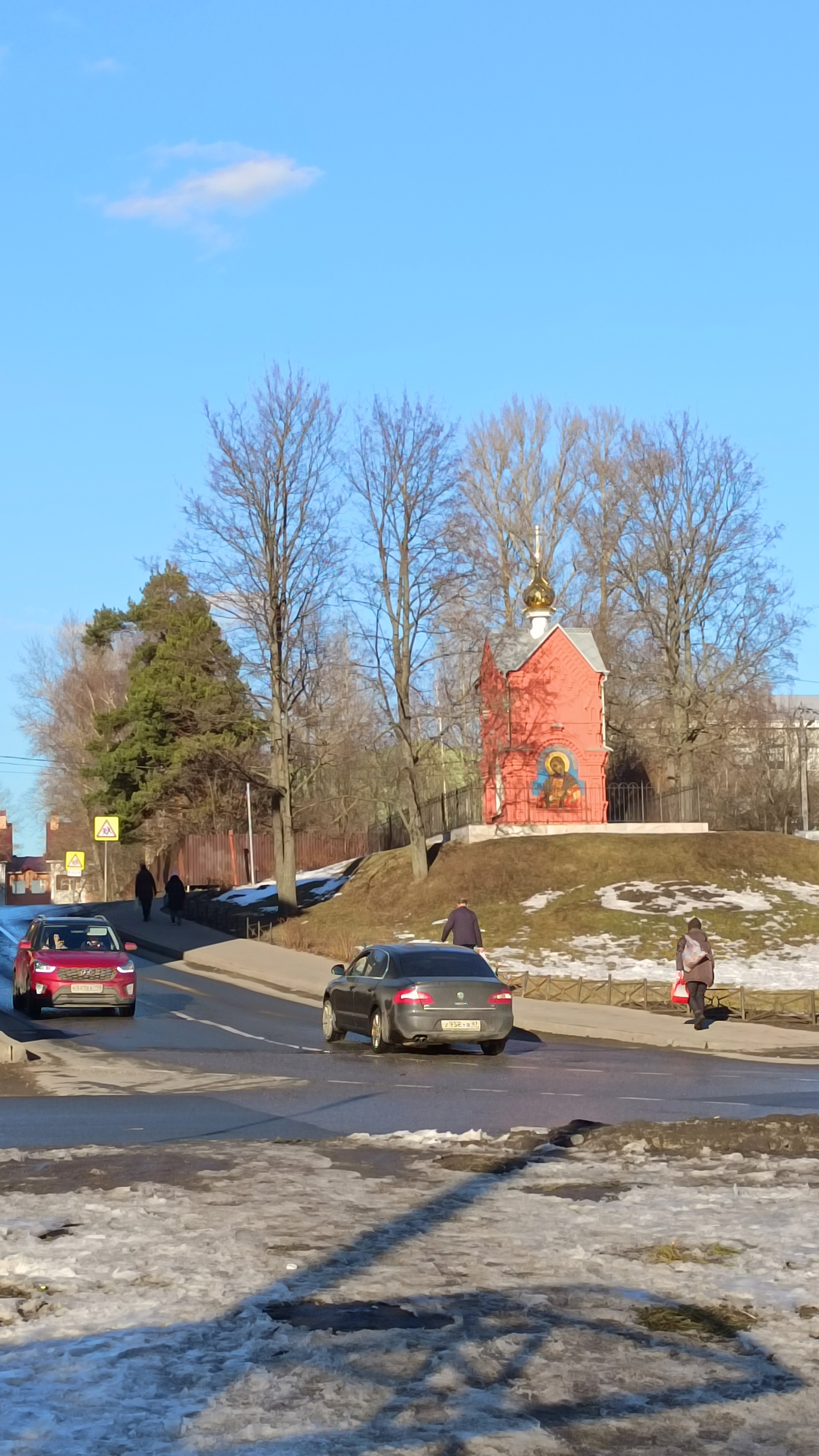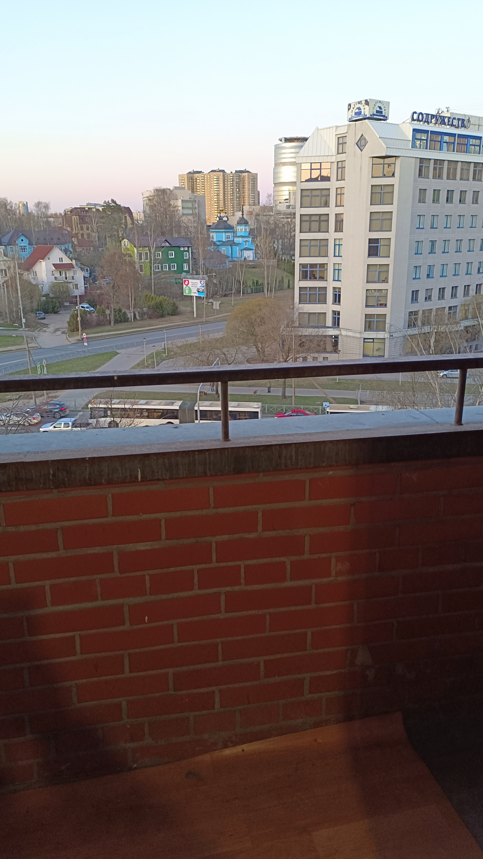 Светлая квартира. Окна на перекресток Коломяжского проспекта и Парашютной улицы. Вид на часовню Ал.Невского и храм Димитрия Солунского в Коломягах.