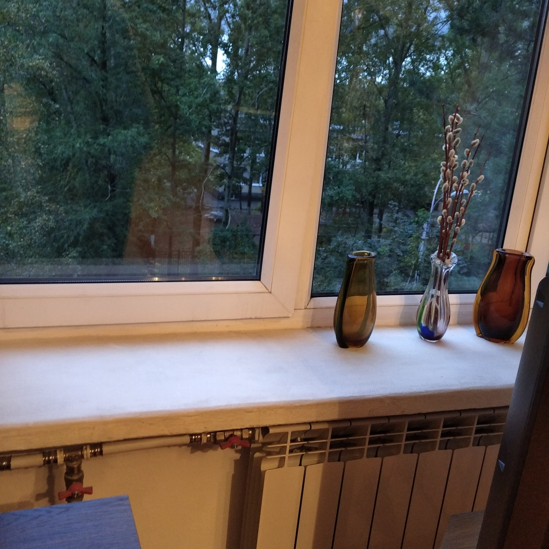 Окна выходят в тихий двор на зеленую территорию. Соседи очень хорошие,везде тихо.
