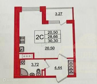 Общая площадь 30.3 м2