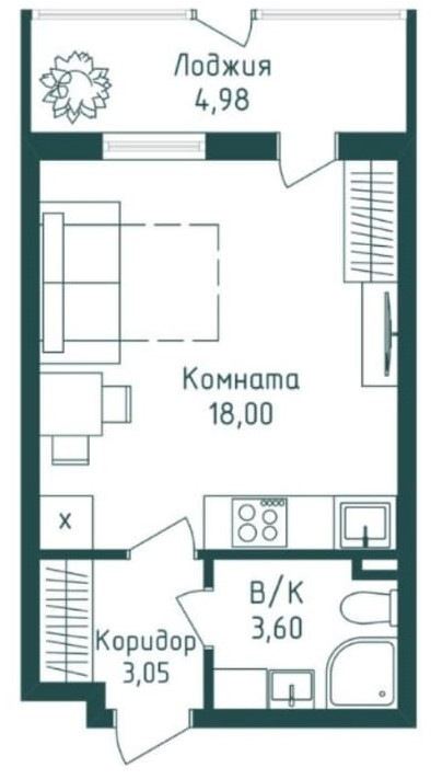 Жилая площадь 18 м2