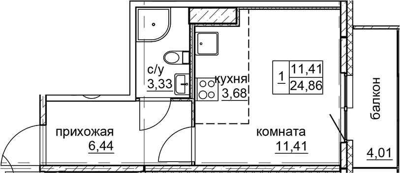 Общая площадь 26 м2