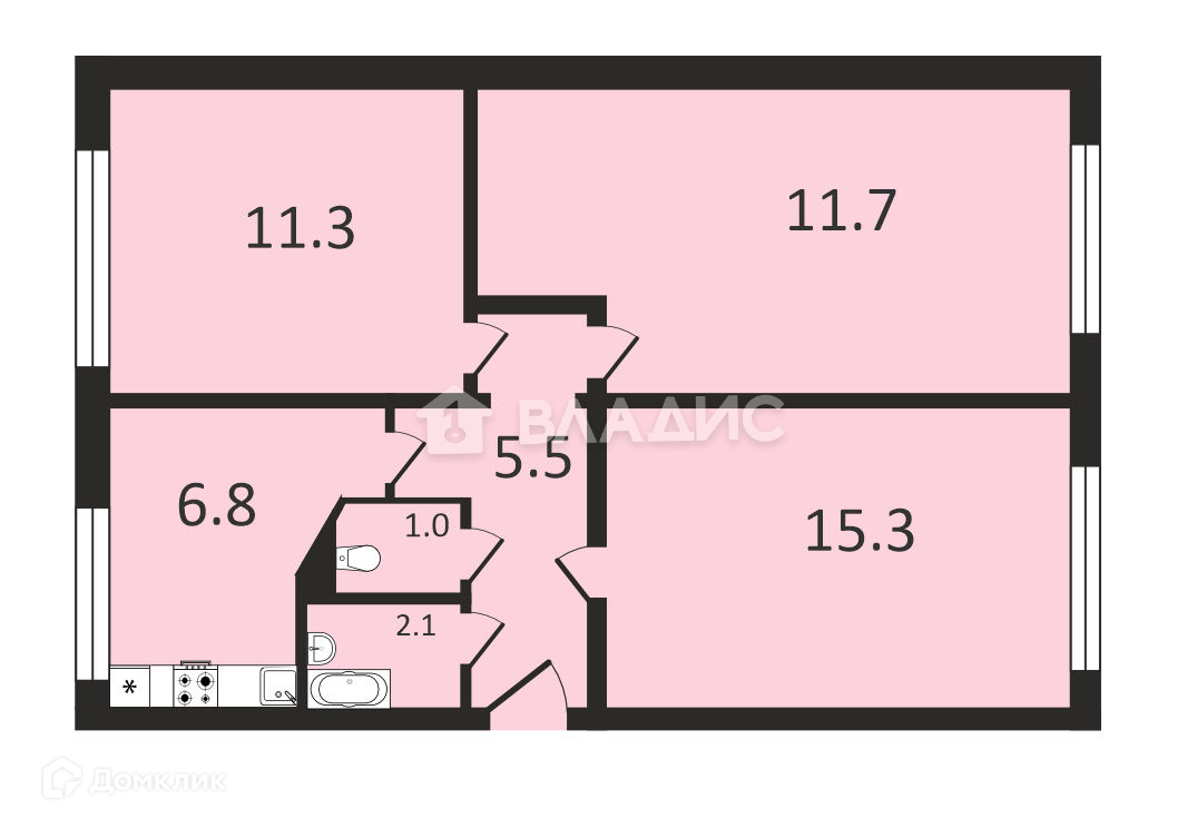 Общая площадь 60.1 м2