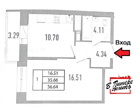 Общая площадь 35.6 м2
