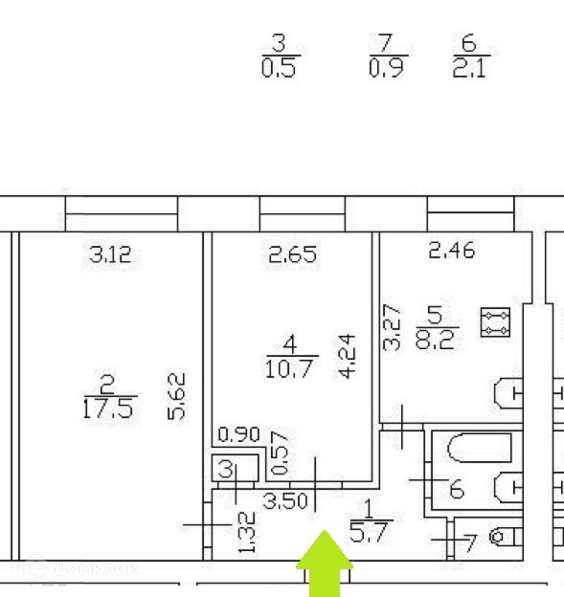 Классическая планировка: изолированные комнаты 17,5 и 10,7 метров. Просторная 8,2м кухня. Не тесная прихожая.