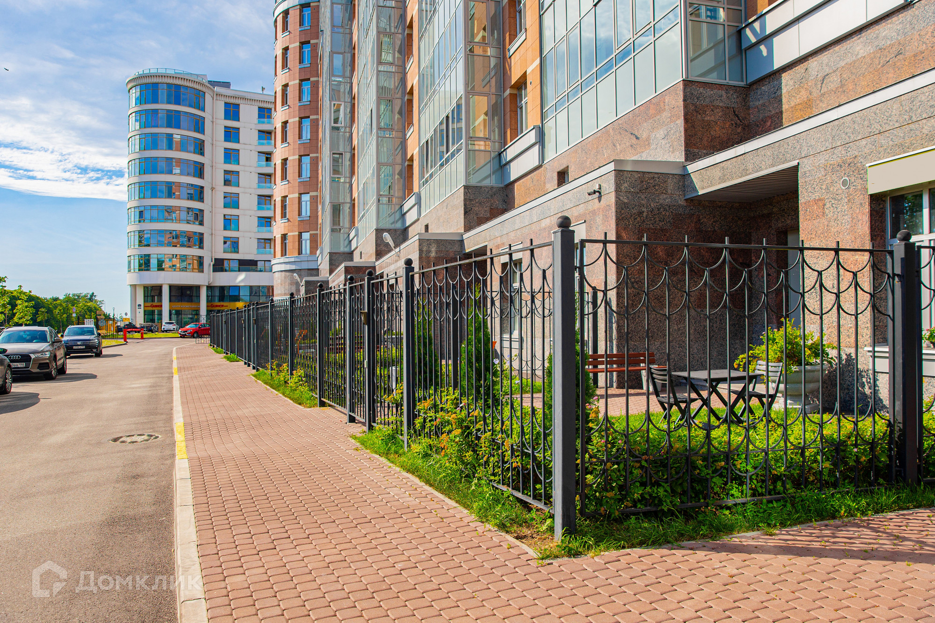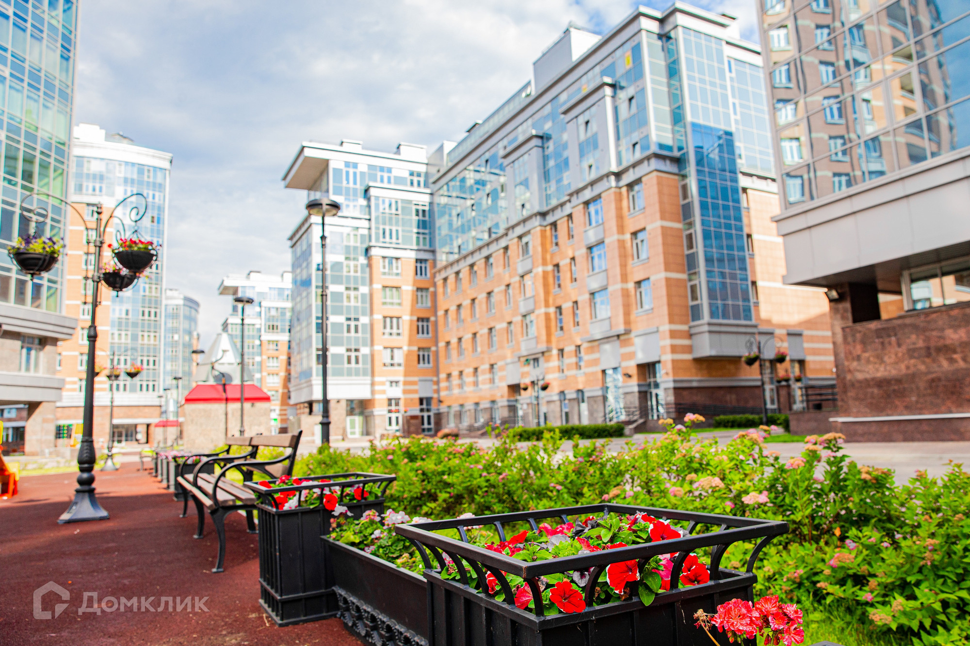 На закрытой территории комплекса расположены детские площадки, кафе, салоны красоты, магазин.
