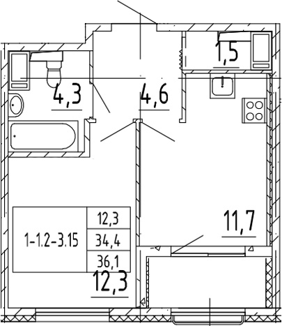Общая площадь 36 м2