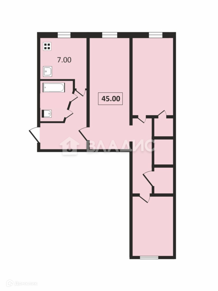 - 45 кв.м. жилая площадь, 7 кв.м. кухня