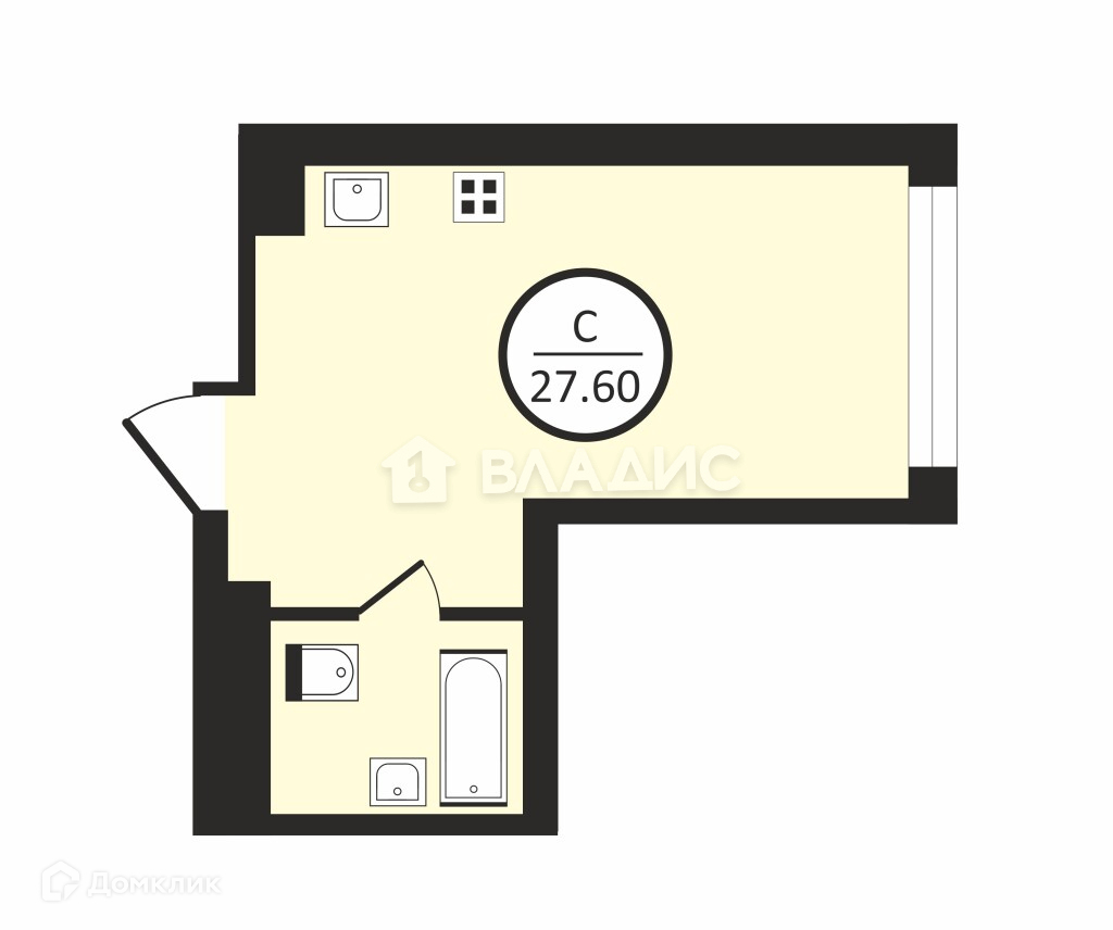Общая площадь 27.6 м2