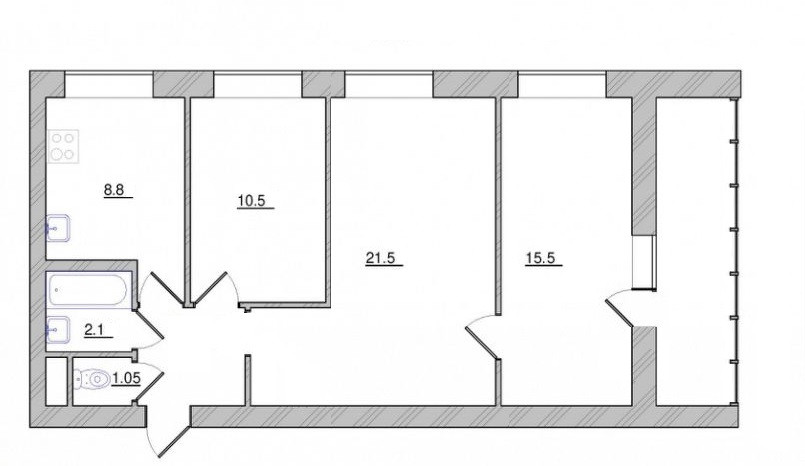 Балкон, лоджия 1 балкон