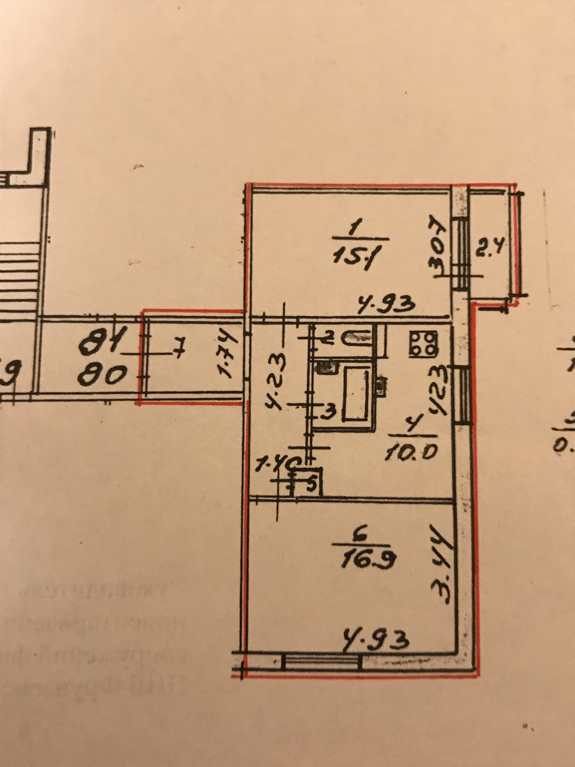 Комнаты изолированны кухней. Комнаты 16,9 м, 15,1м,кухня 10м.