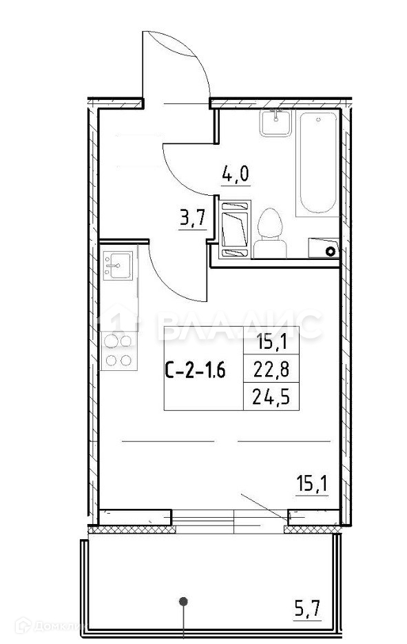 Балкон, лоджия 1 лоджия