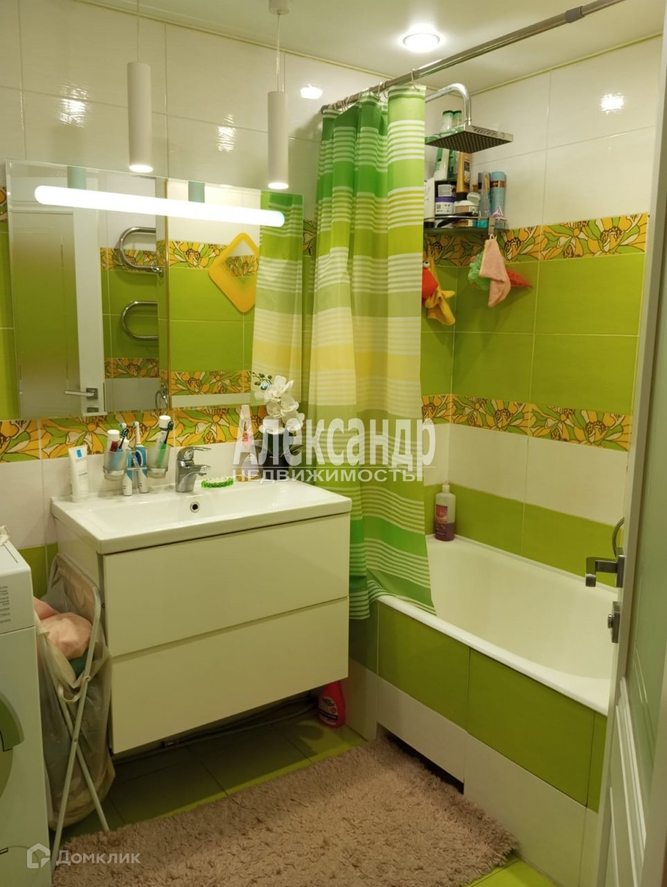 Качественный ремонт, точечные светильники выведены под каждую зону, теплый пол, кафель, ламинат.