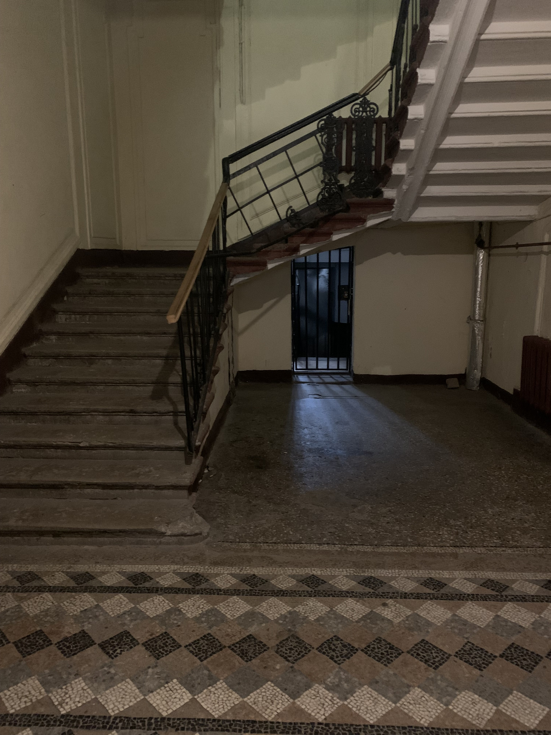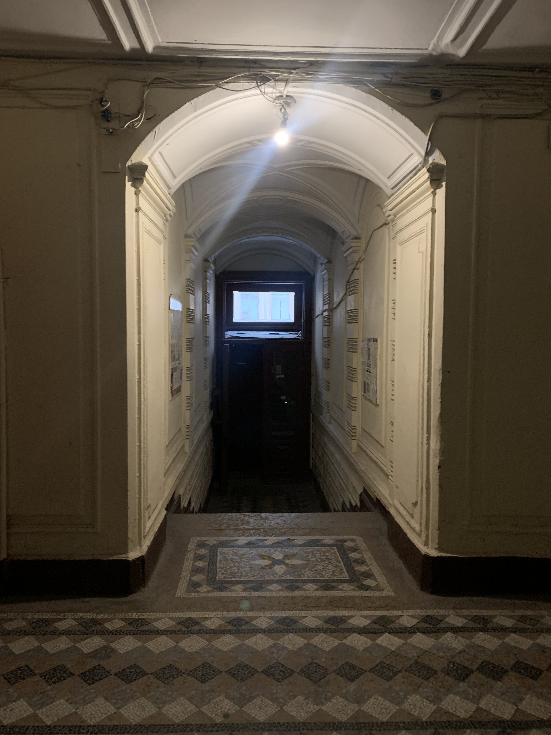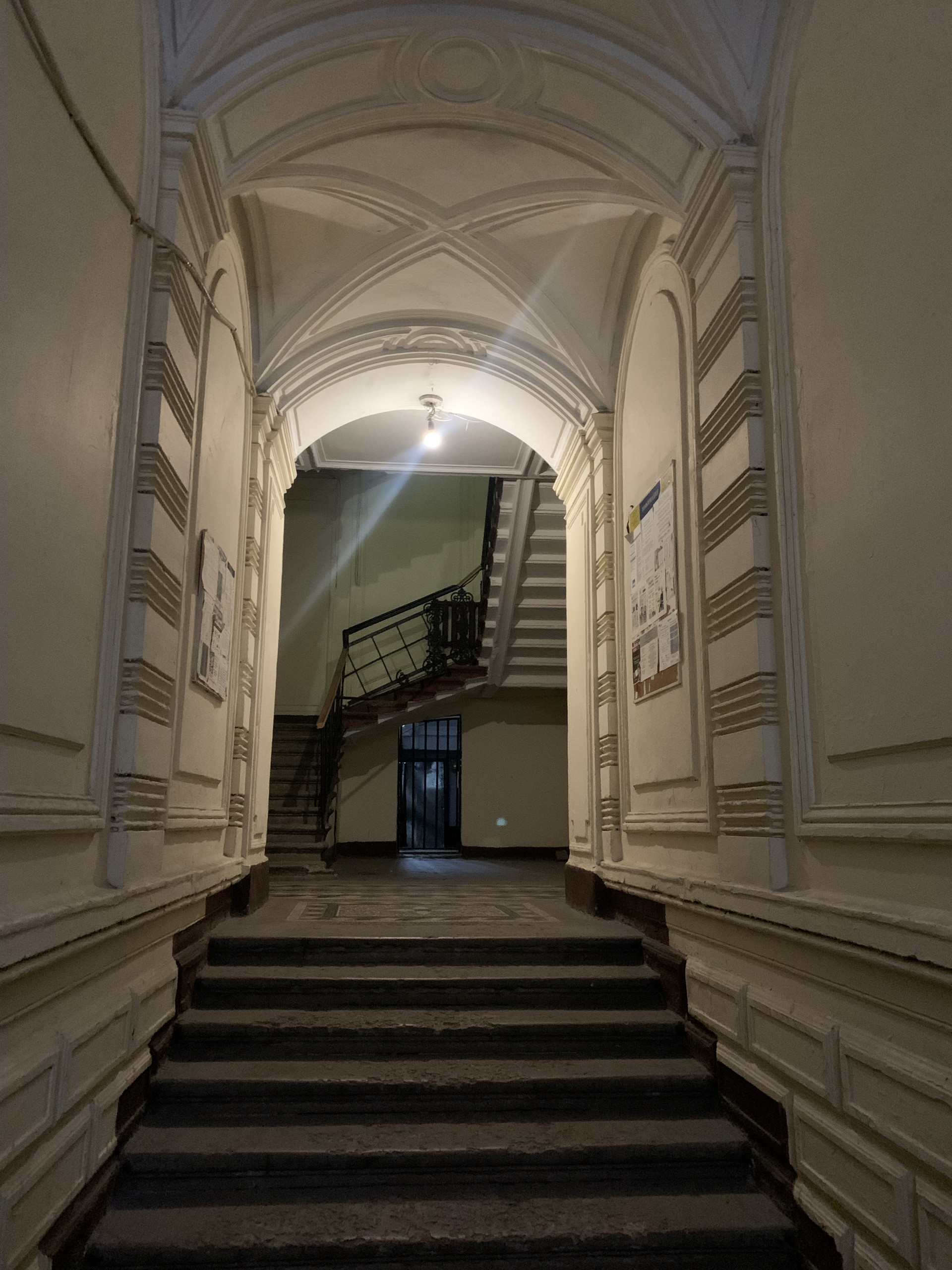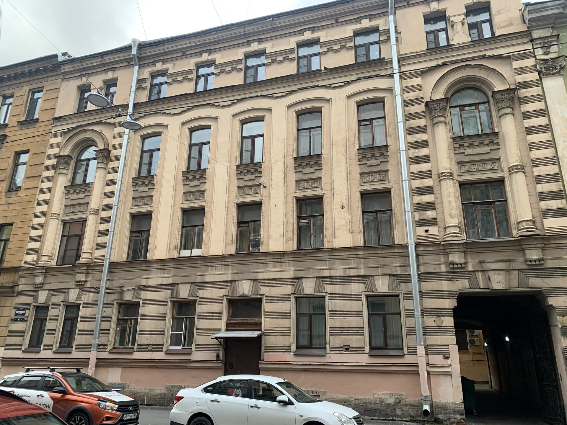 Парадный вход с Дмитровского пер., сохранились старинные элементы лепки, кованные ограждения и плитка на полу. На площадке всего 2 квартиры, сверху есть просторная мансарда, которую при желании можно использовать для своих нужд. Во дворе дома просторная площадка, мощенная тротуарной плиткой, на которой можно ставить автомобиль.