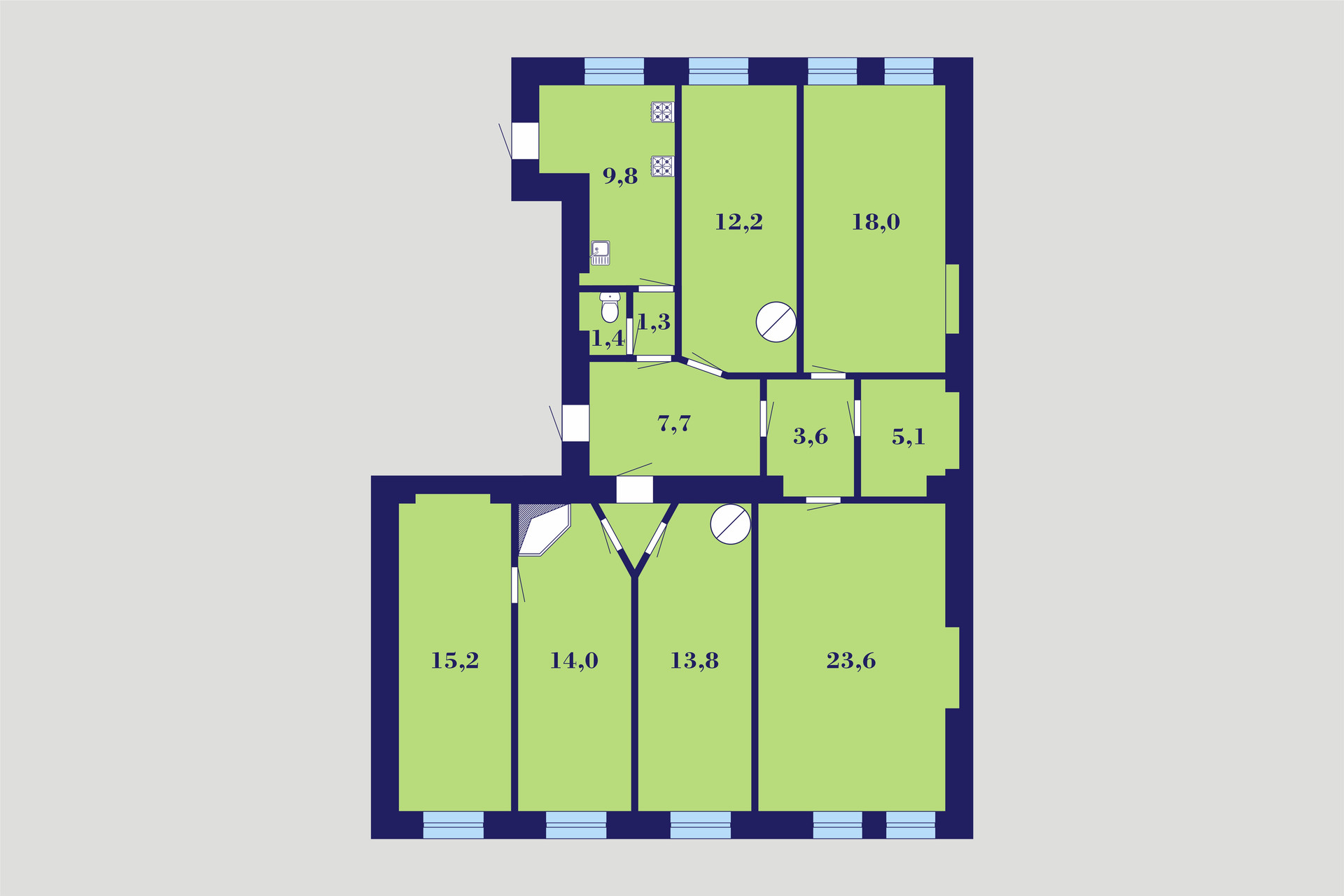 5-комнатная квартира, 126.3 м2, этаж 4 / 4, на продажу в Санкт-Петербурге, Дмитровский переулок, 6
