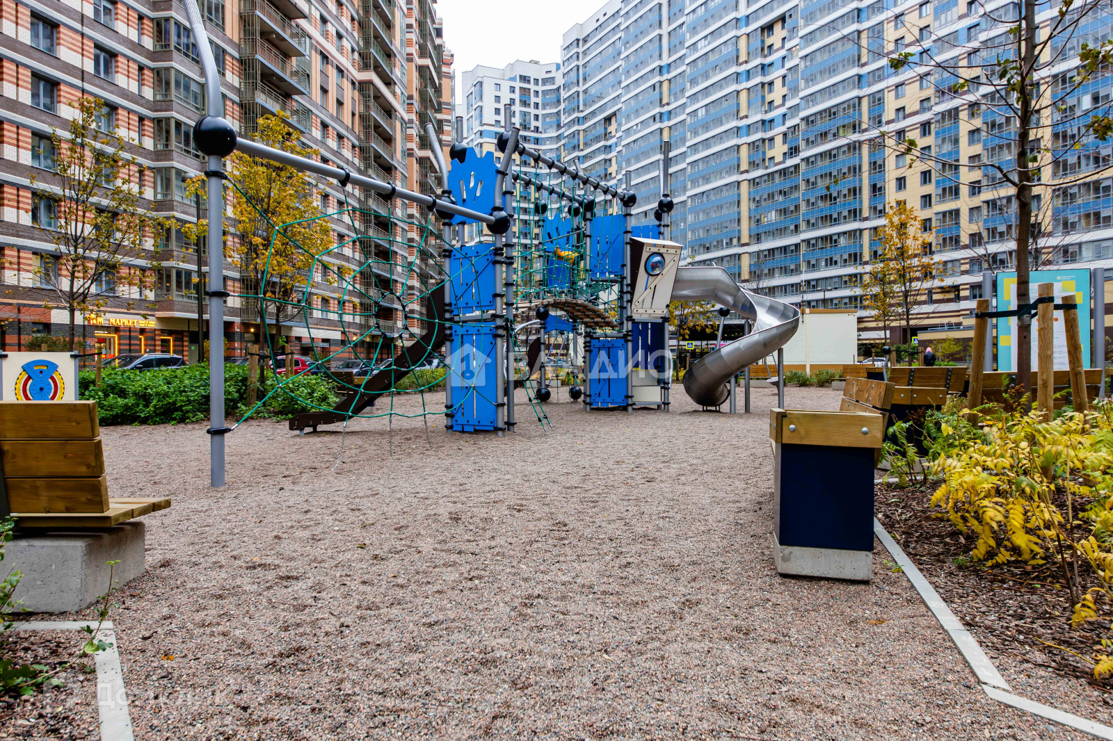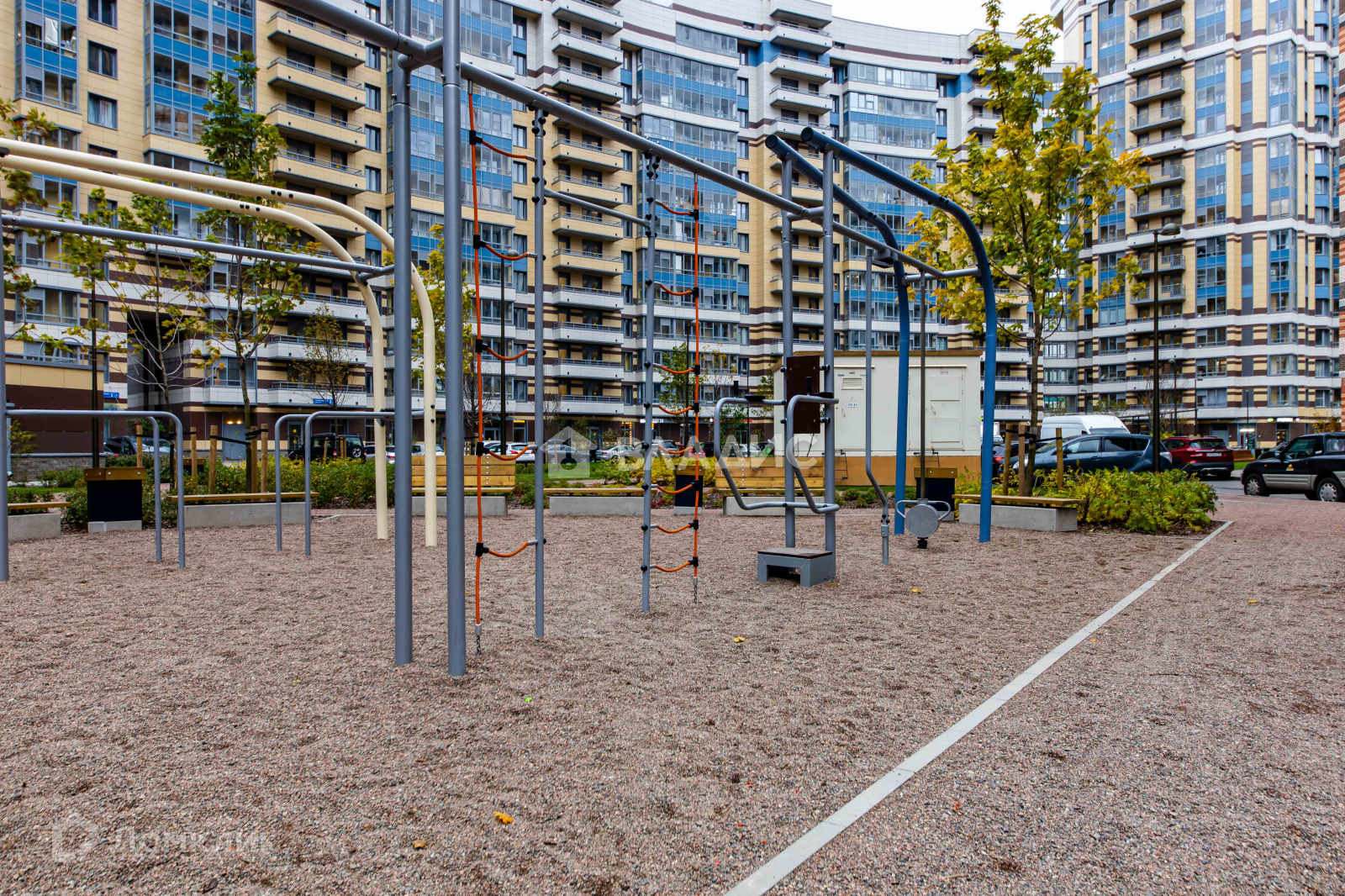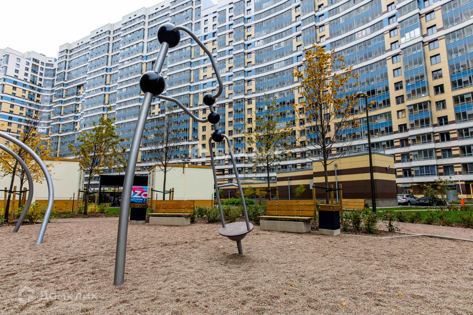 Территория комплекса безопасная, благоустроена местами для отдыха и прогулок, а также спортивными и детскими площадками.