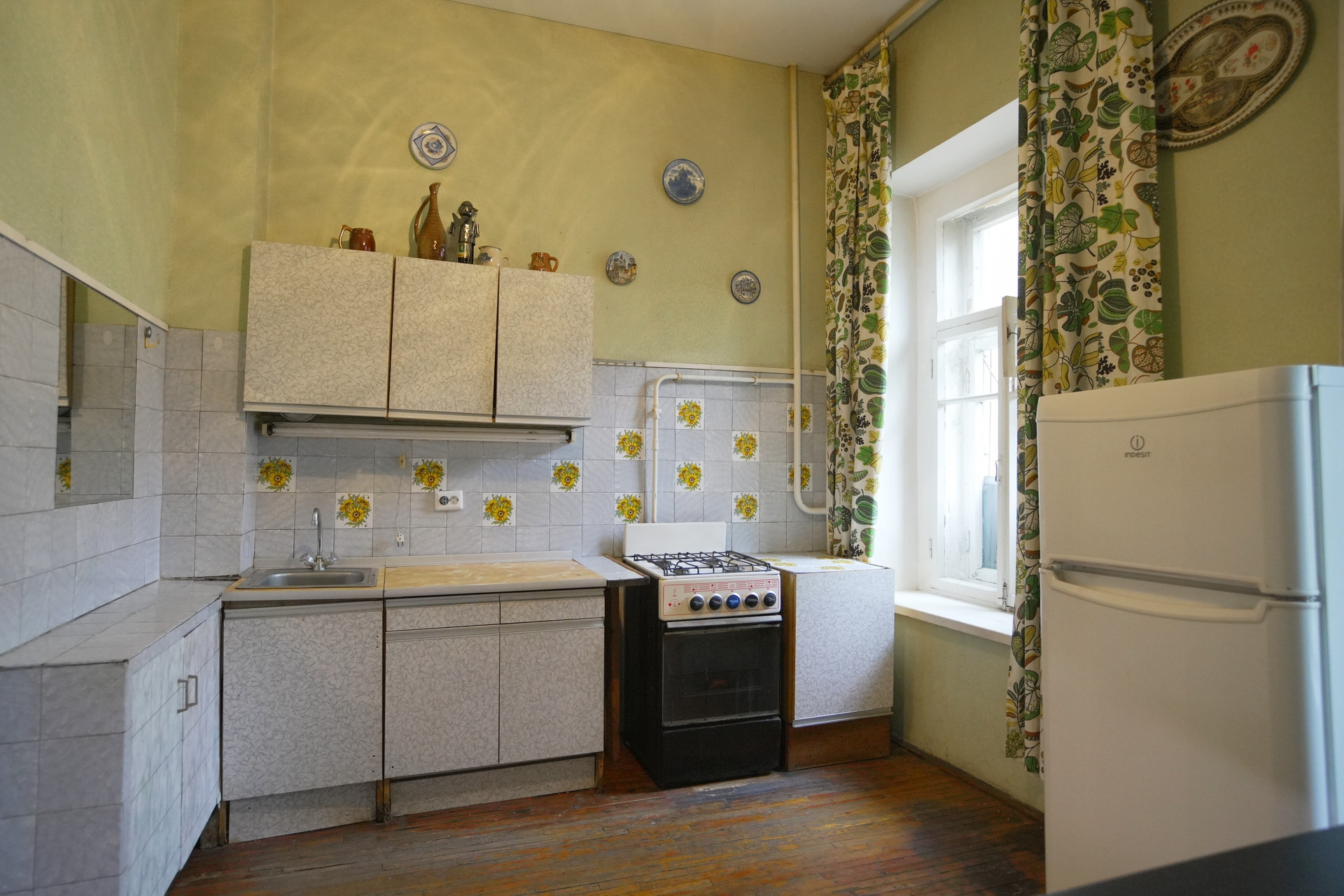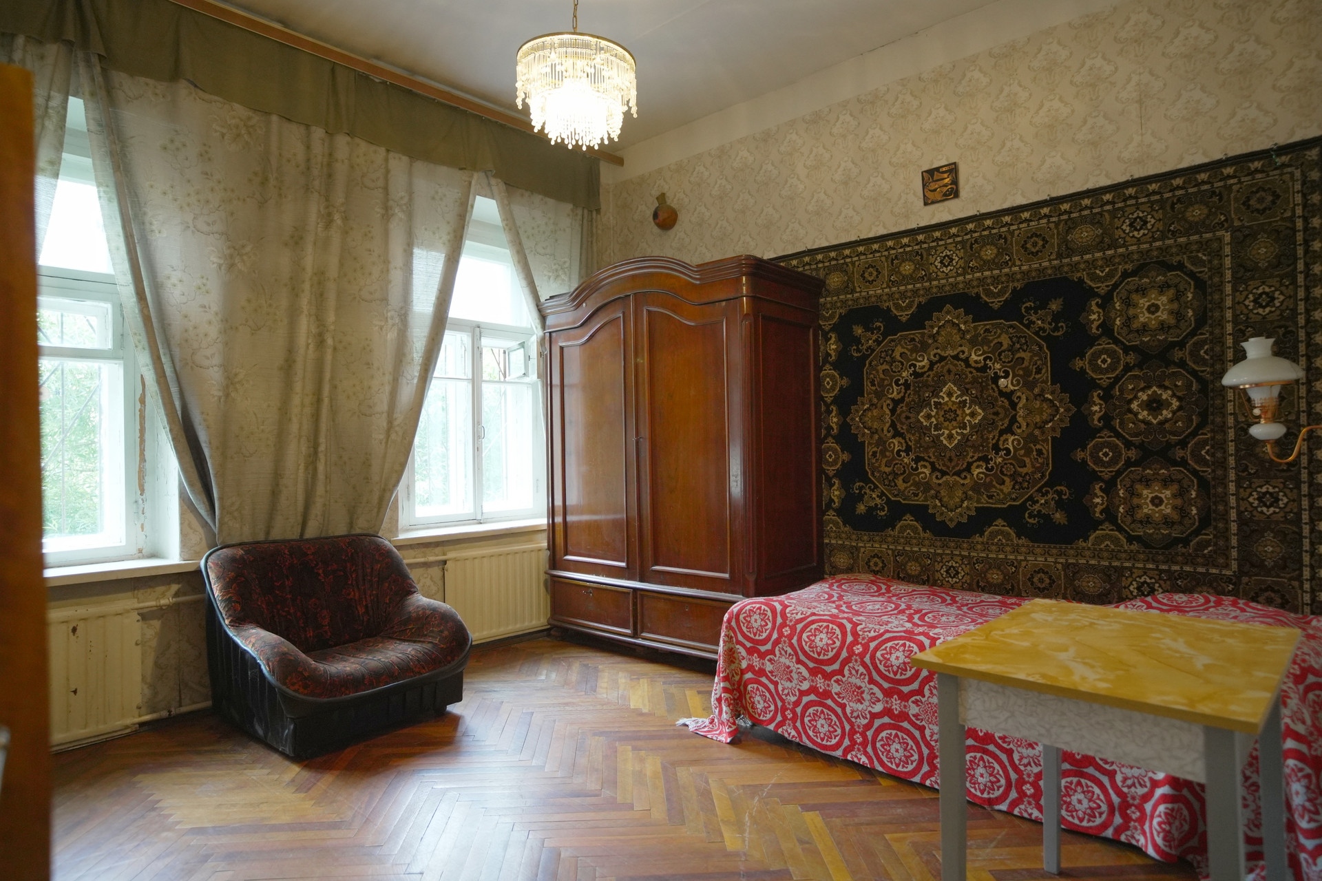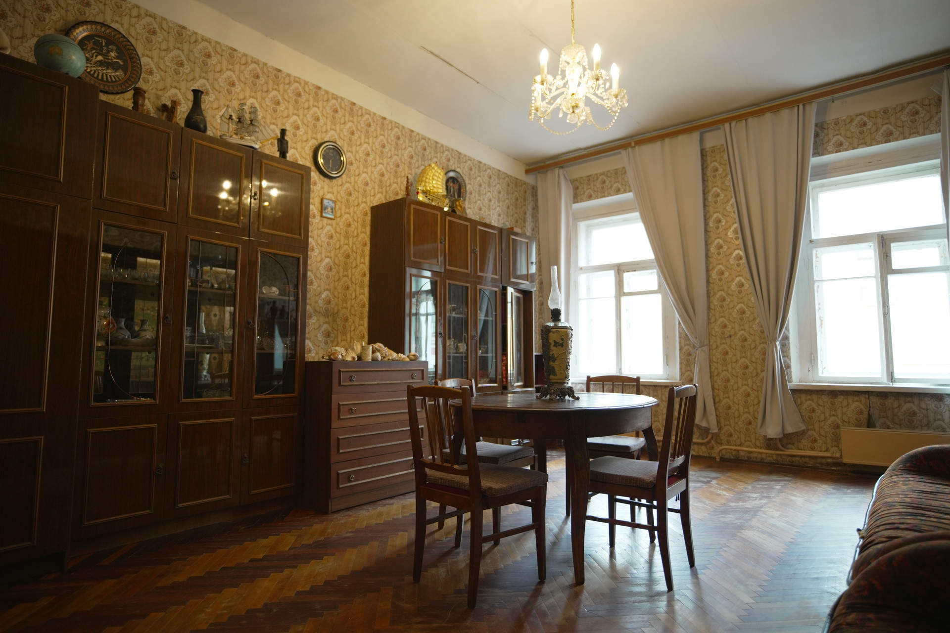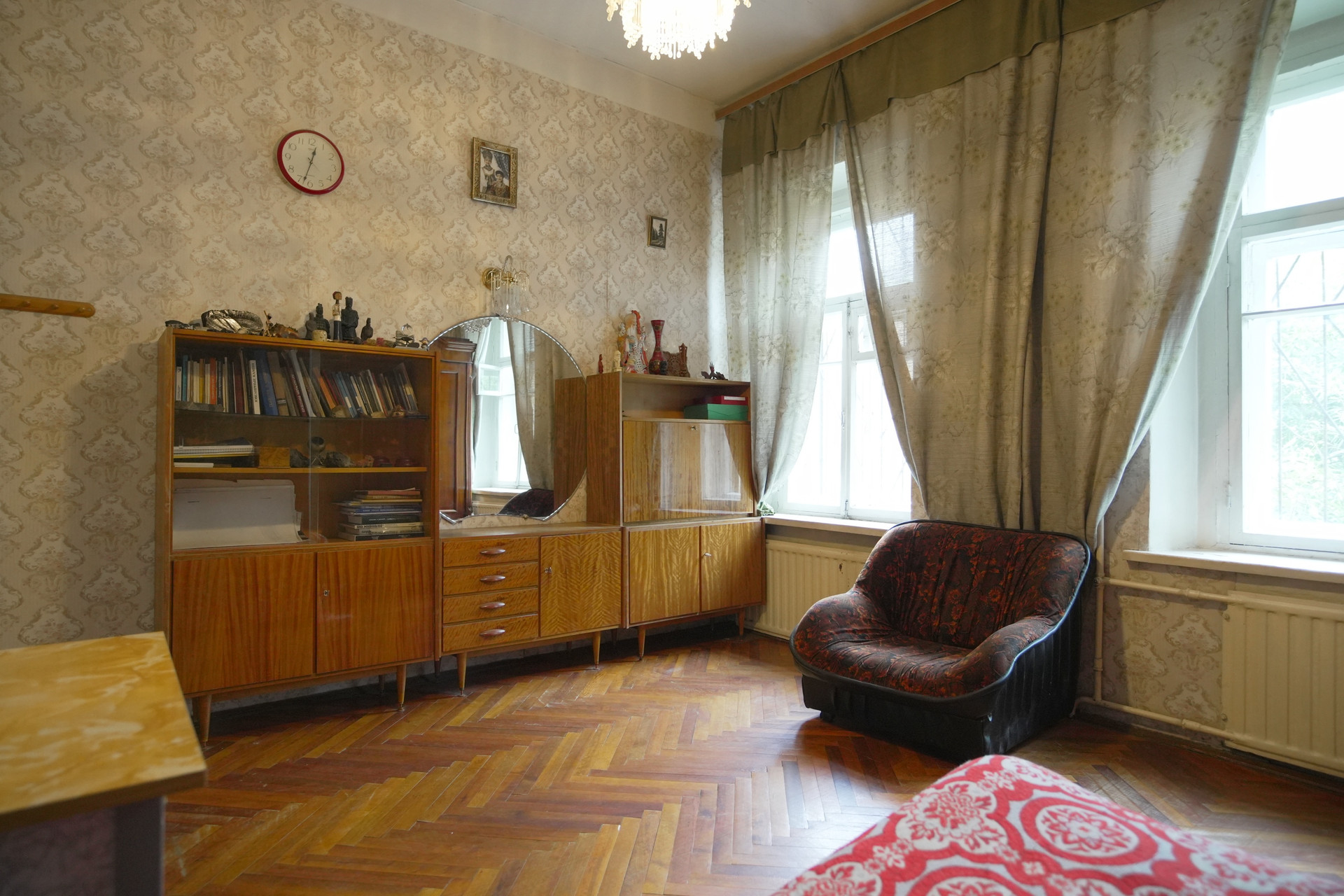Квартира двухсторонняя, с окнами, выходящими во двор и на улицу, что обеспечивает хорошую вентиляцию и освещение. Вашим соседям повезло - они также любят и ценят уникальность данного фонда.